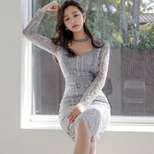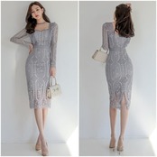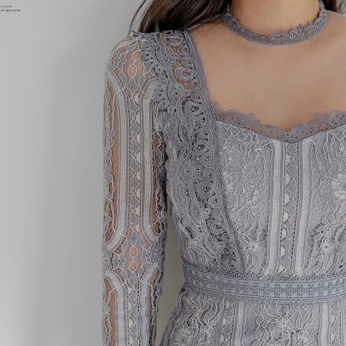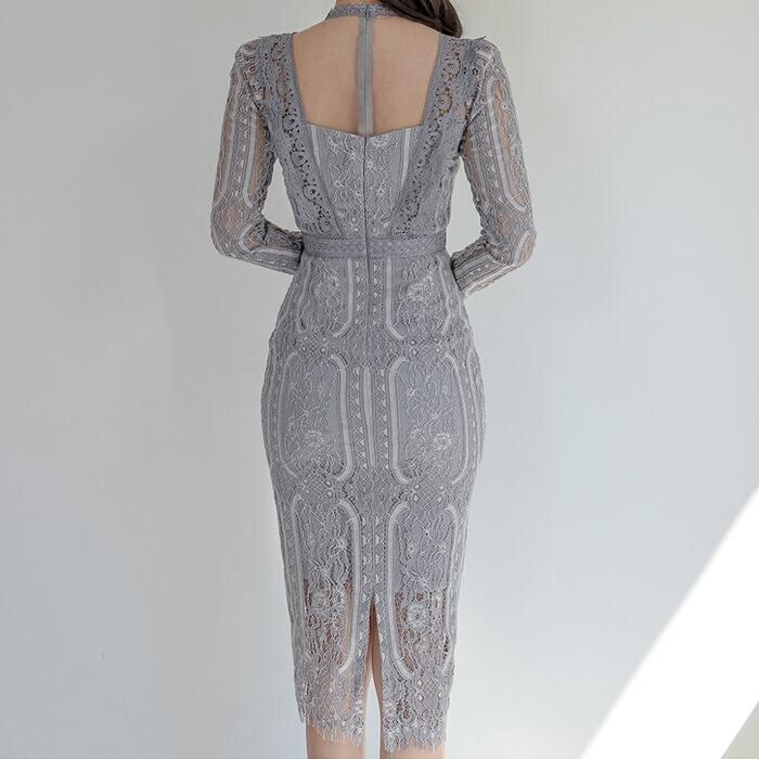 大きいサイズ結婚式 ワンピース ロングワンピ 袖あり エレガント レース シアー 花柄 ミモレ丈 きれいめ レディース ワンピ ドレス 長袖 タイト 透け感 フォーマル セレモニー 発表会 大人可愛い クラシカル 二次会 グレー 春 秋 冬 20代 30代 40代 50代
