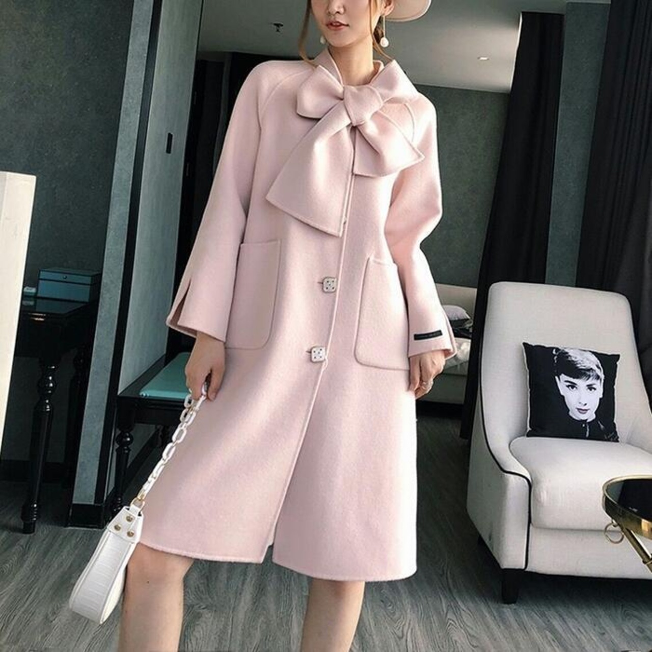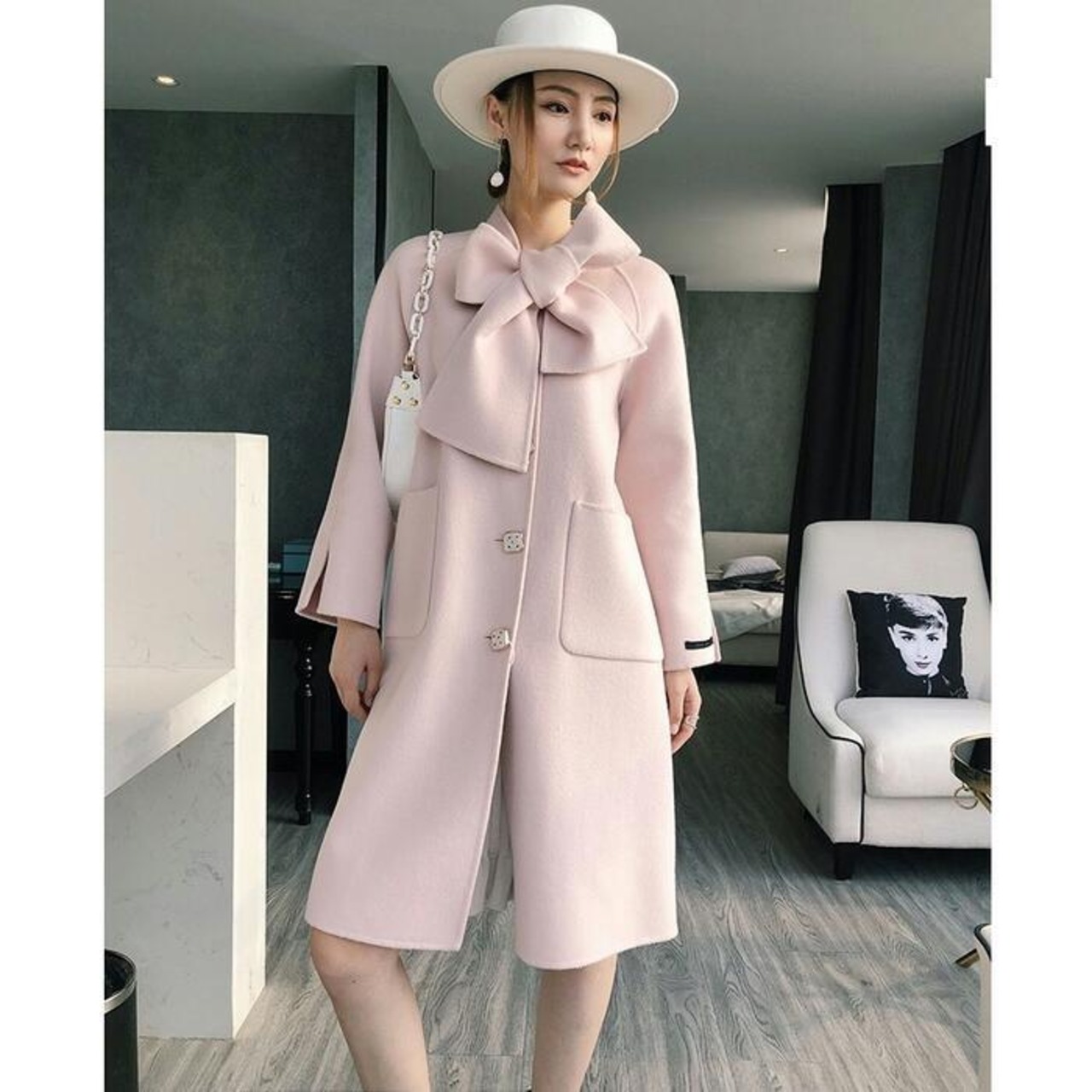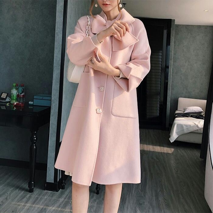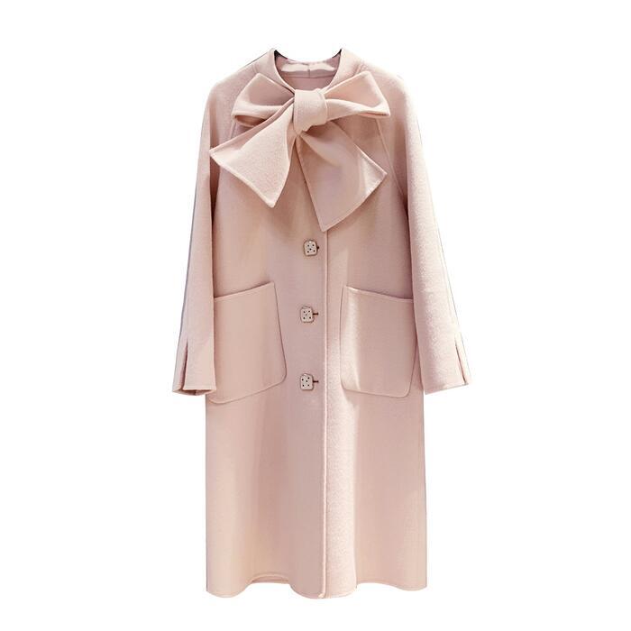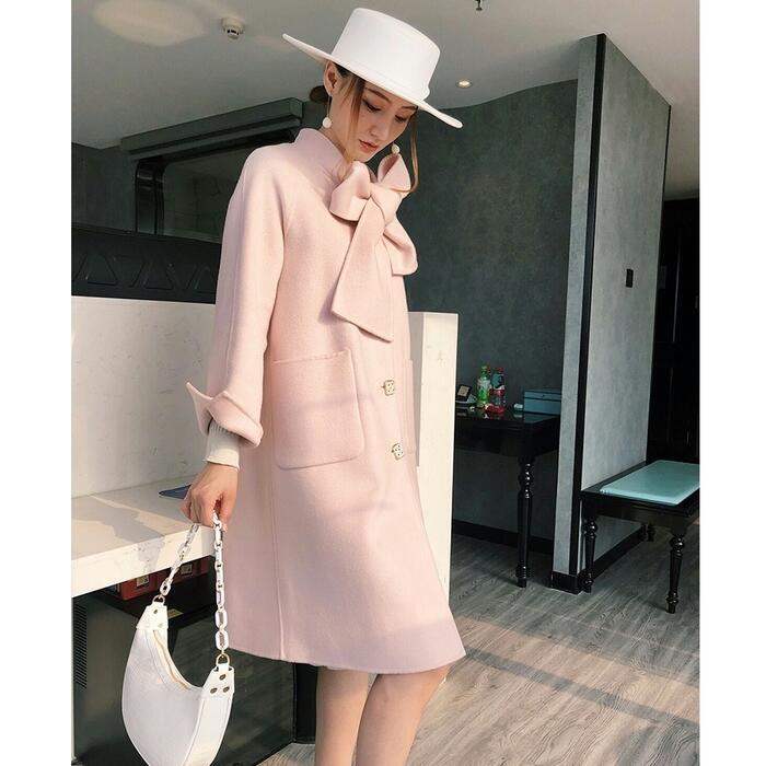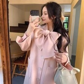 ベイビーピンクにビッグリボンがガーリーなコート。