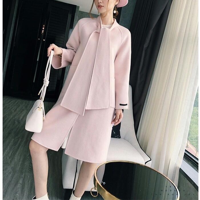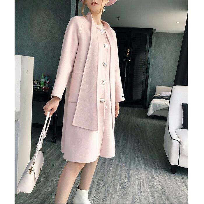 ノーカラーコート レディース きれいめ エレガント カジュアル ジャケット アウター リボンタイ ロング丈 コート 長袖 大人 可愛い シンプル ガーリー ゆったり 体系カバー 大きいサイズ ピンク 春 秋 冬 20代 30代 40代 50代