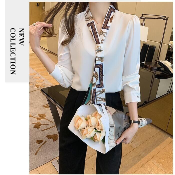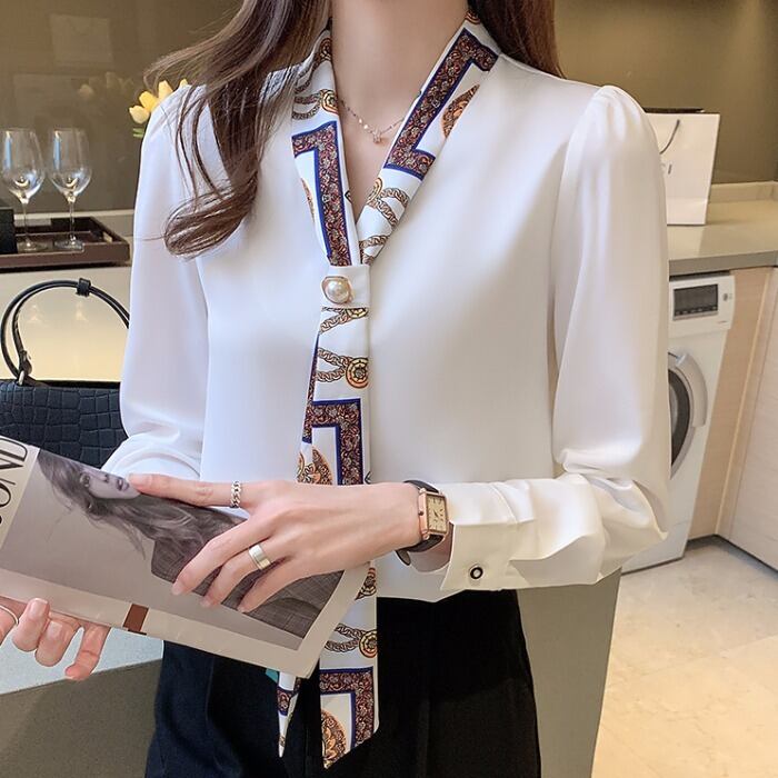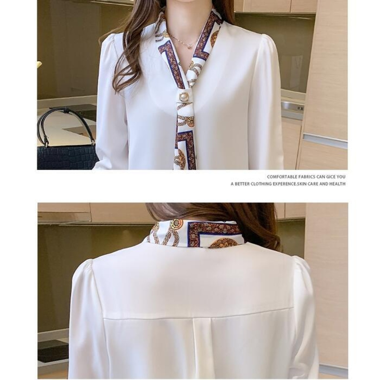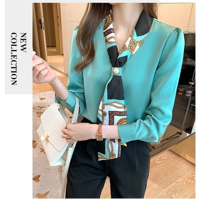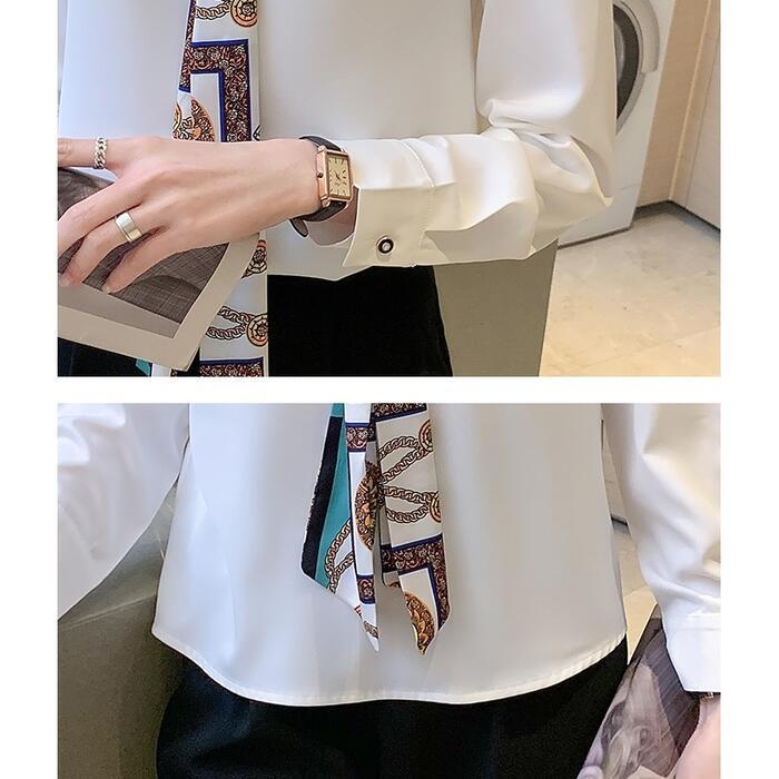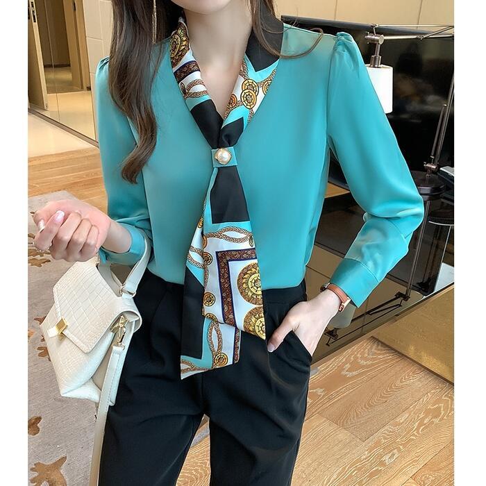 全2色 トップス シャツ ブラウス リボンタイ スカーフタイ 長袖 レディース カジュアル おしゃれ きれいめ フェミニン エレガント ゆったり 通勤 かっこいい シンプル 大きいサイズ 大人可愛い ホワイト 白 グリーン 緑 春 秋 冬 20代 30代 40代 50代