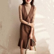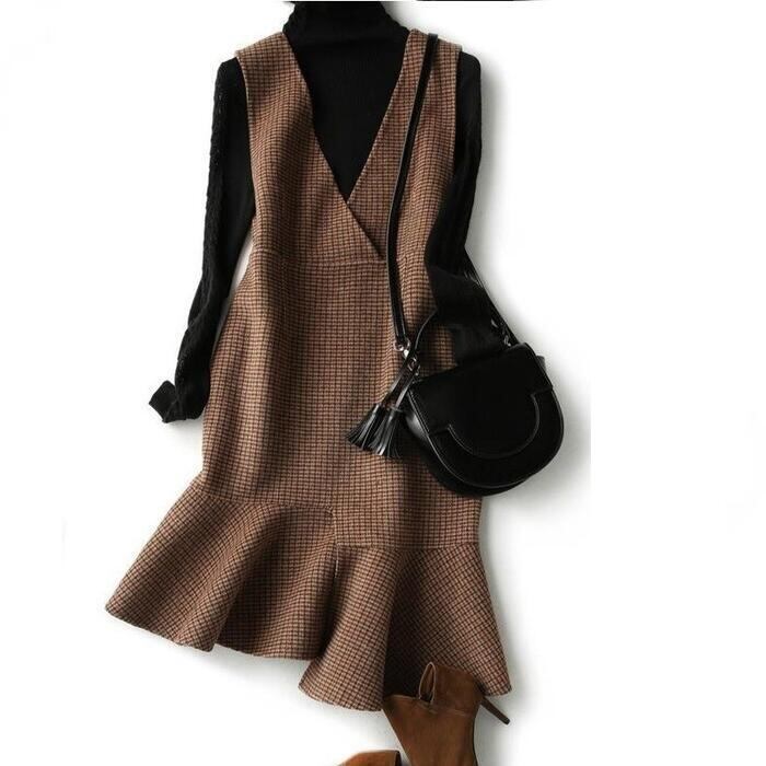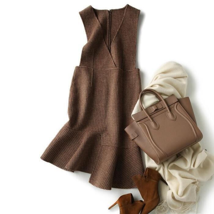 ワンピース ジャンパースカート サロペットスカート チェック柄 ノースリーブ ひざ丈 アシンメトリー きれいめ レディース ワンピ ドレス カジュアル 大人可愛い 体系カバー ハイウエスト 大きいサイズ ブラウン 春 秋 冬 20代 30代 40代 50代