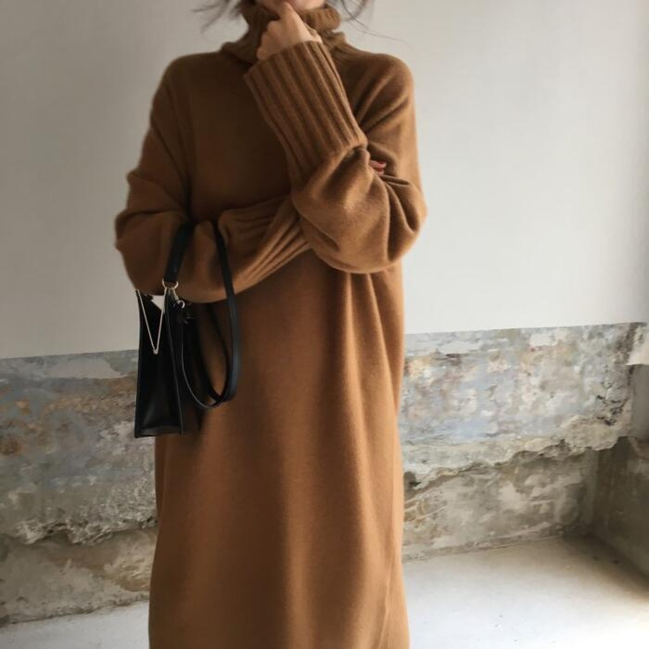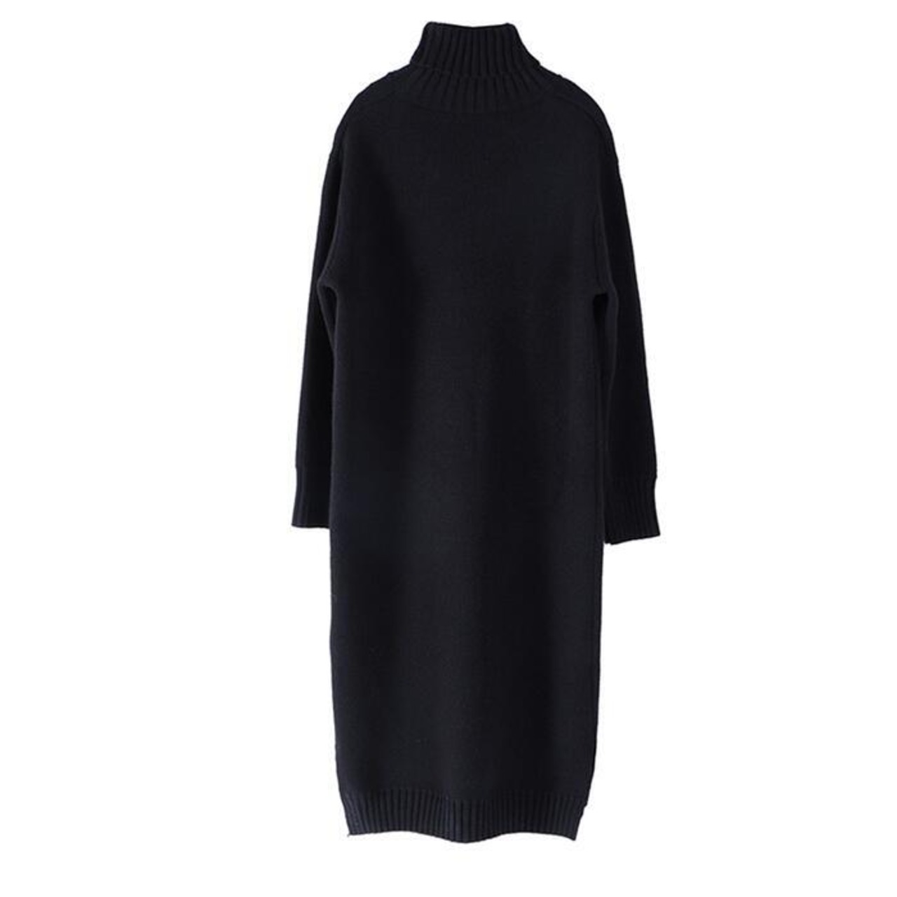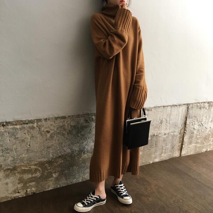 ゆったりシルエットのタートルニットワンピース。