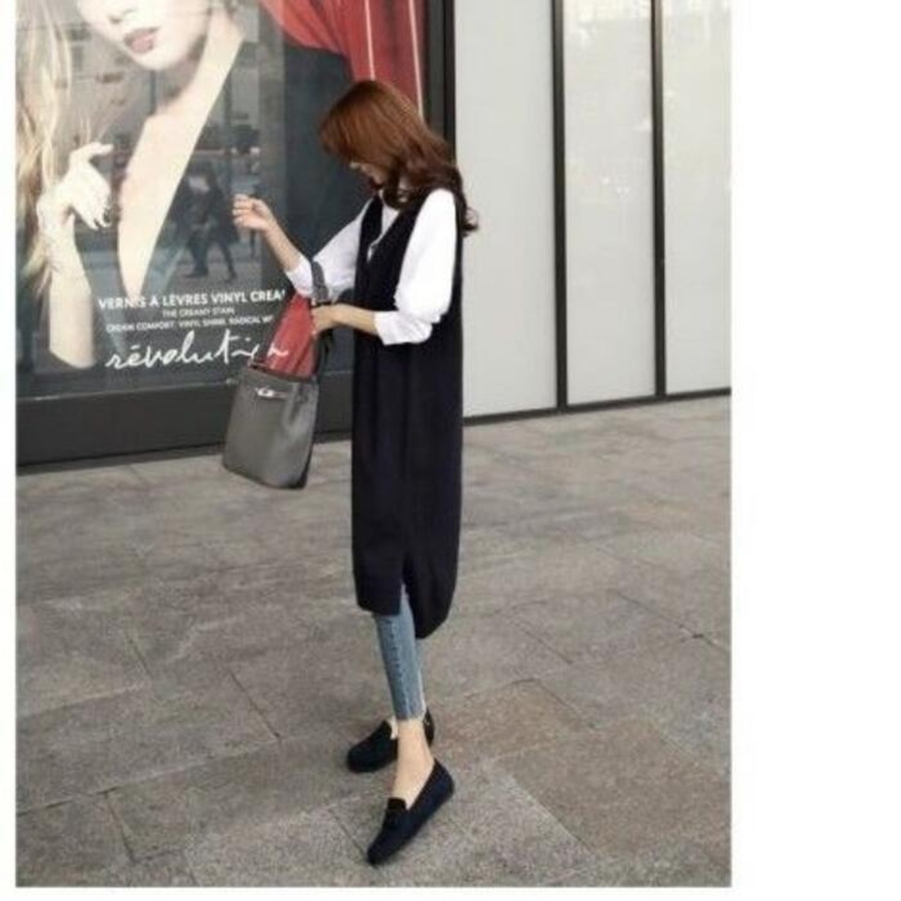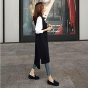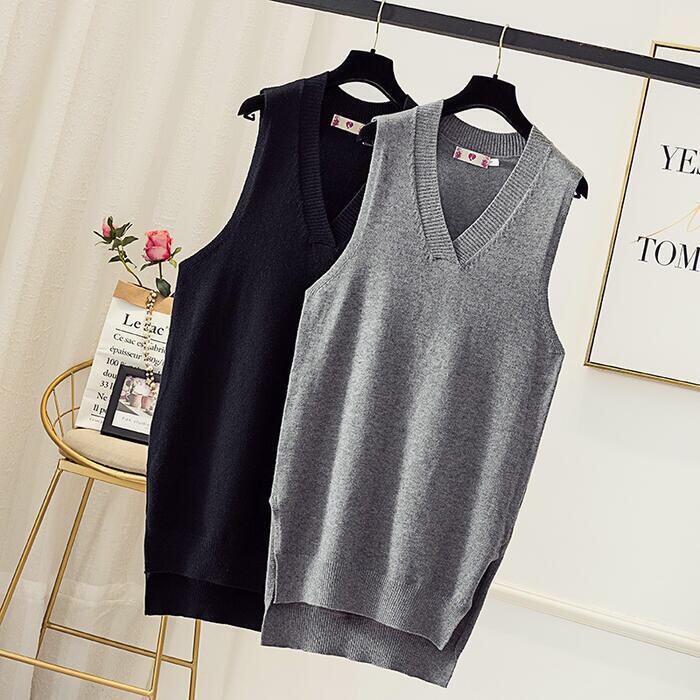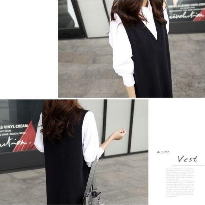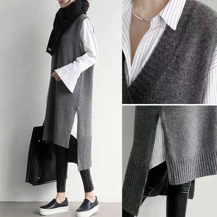 ワンピースのように使えるVネックロングニットベスト。