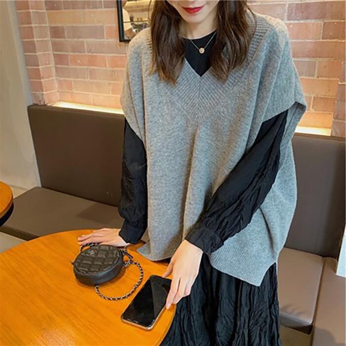 セットアップ 2点セット ニット ベスト ワンピース ロングワンピ ドレス ロング丈 カジュアル 袖あり 長袖 レディース きれいめ おしゃれ シンプル 大きいサイズ ゆったり グレー ブラック 黒 春 秋 冬 20代 30代 40代 50代