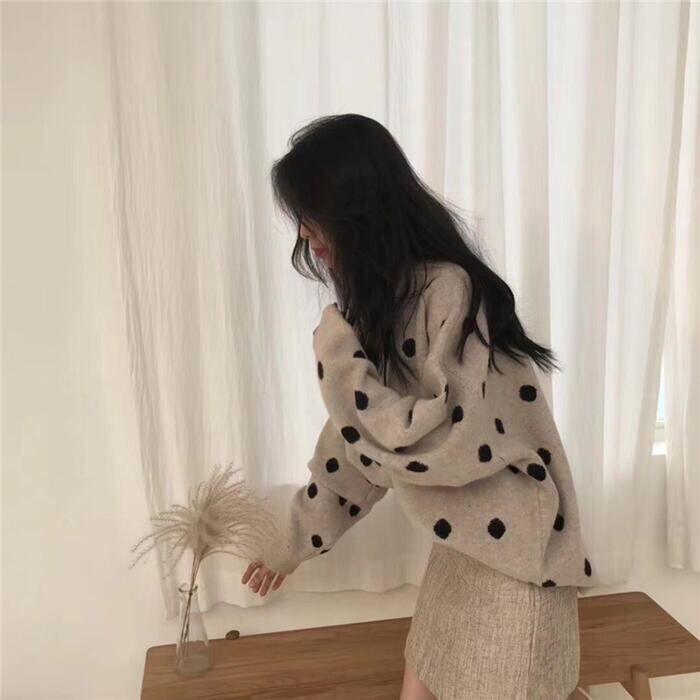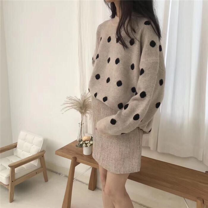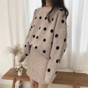 大きめドット柄が大人可愛いニットセーター。