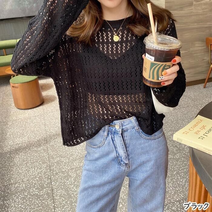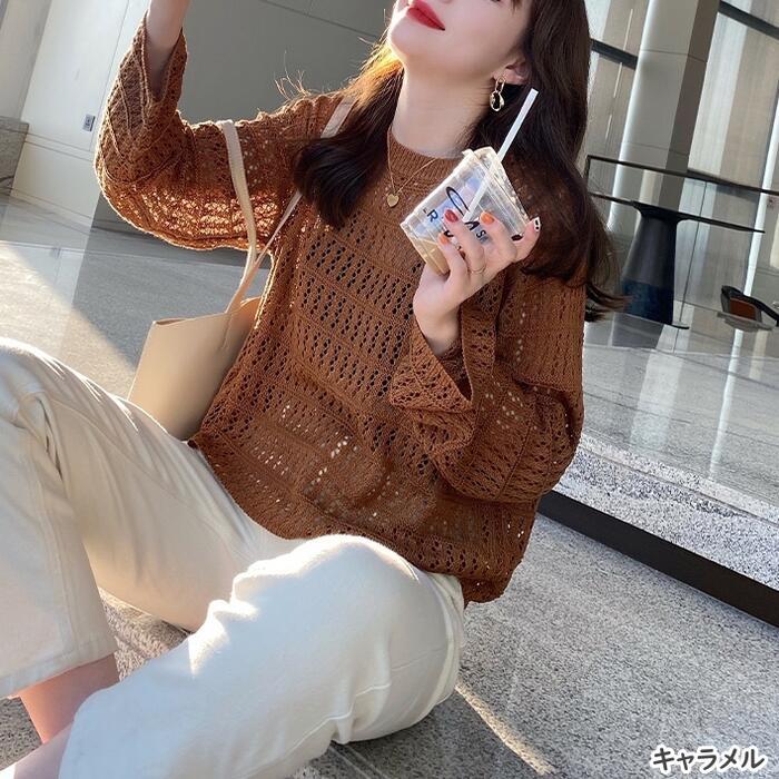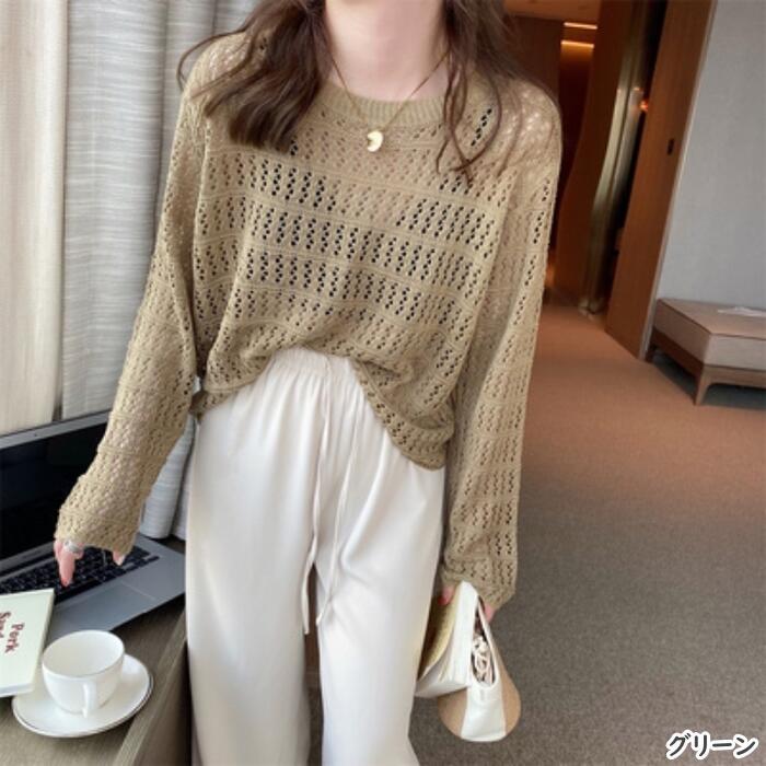 全5色 レース トップス ニット カットソー Tシャツ クルーネック レディース カジュアル おしゃれ フェミニン 大人可愛い きれいめ 透け感 ショート丈 長袖 こなれ感 ホワイト 白 ブラック 黒 グリーン 緑 ベージュ ブラウン 春 秋 夏 20代 30代 40代 50代