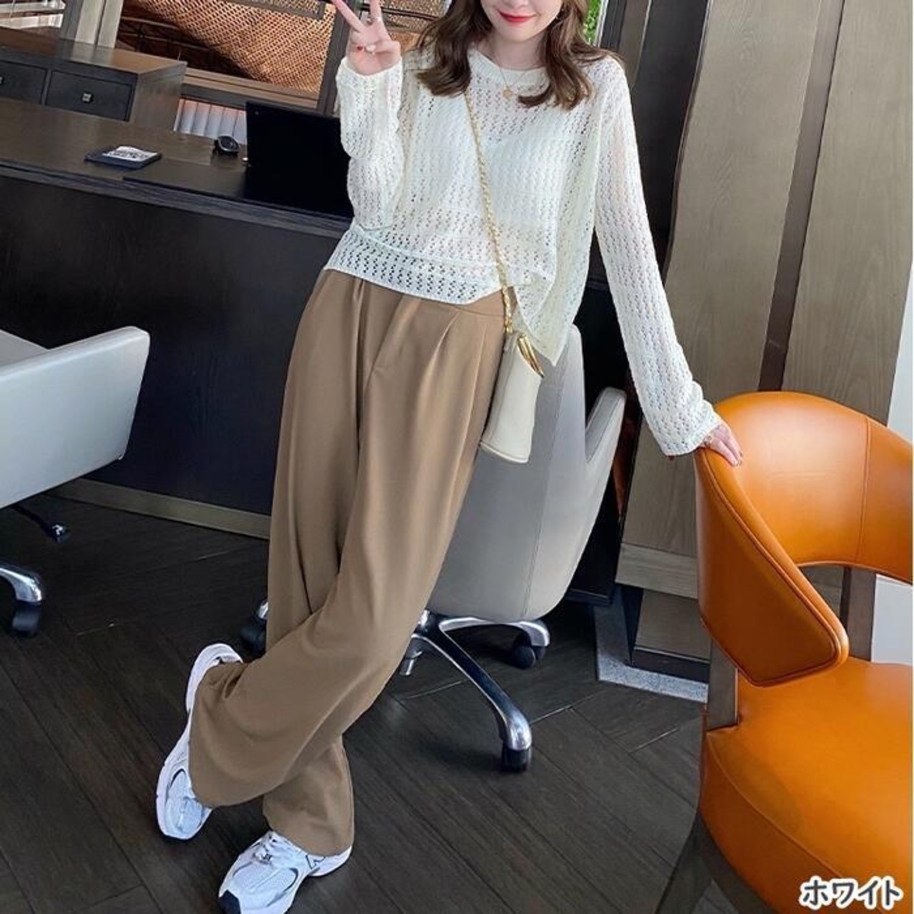合わせるインナーで色んなレイヤードコーデを楽しめます。