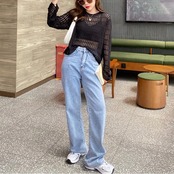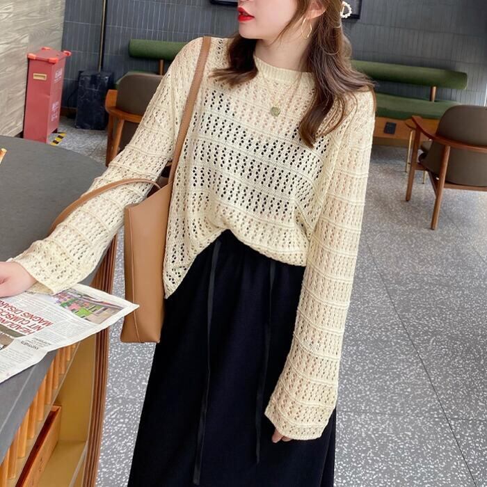 透け感がフェミニンな長袖レーストップス。