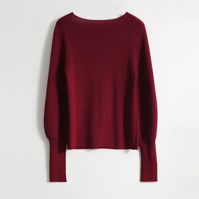 ボリューム袖を作る長めのリブで華奢見せが叶います。