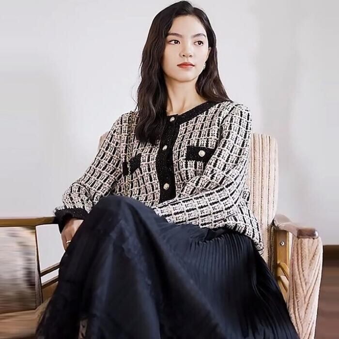 カーディガン ノーカラージャケット チェック レディース きれいめ カジュアル アウター 羽織 長袖 大人 可愛い フェミニン エレガント オフィス 通勤 おしゃれ お呼ばれ ブラック 黒 春 秋 冬 20代 30代 40代 50代