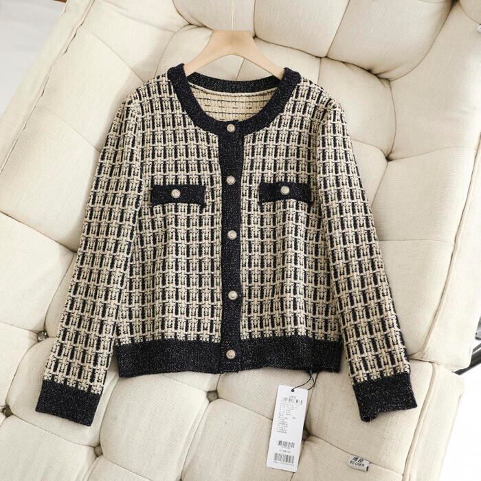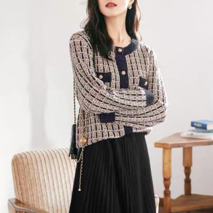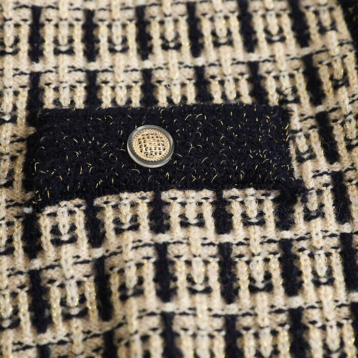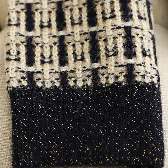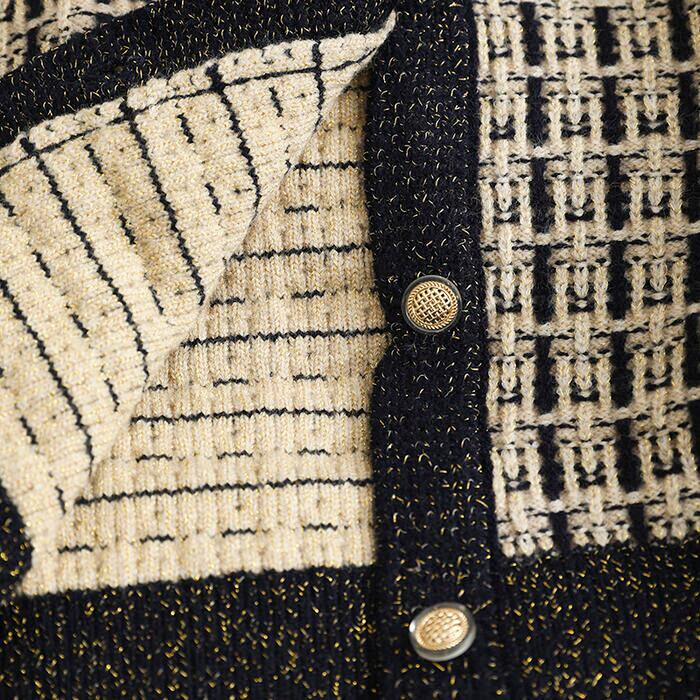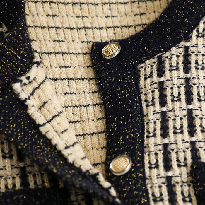 ゴールドのラメ糸を編み込んだ上品なニットカーディガン。