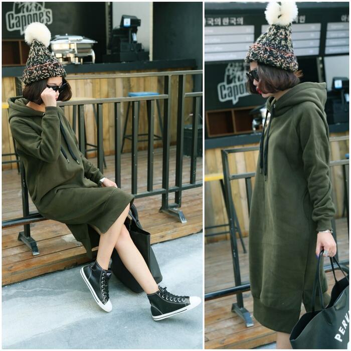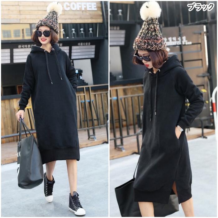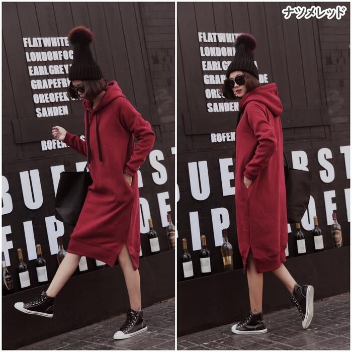 全4色 大きいサイズ裏起毛 ワンピース ロングワンピ スウェット フード付き ミモレ丈 パーカー フーディー レディース ワンピ ドレス カジュアル 大人可愛い ゆったり 体型カバー シンプル レッド 赤 グリーン 緑 ブラック 黒 春 秋 冬 20代 30代 40代 50代