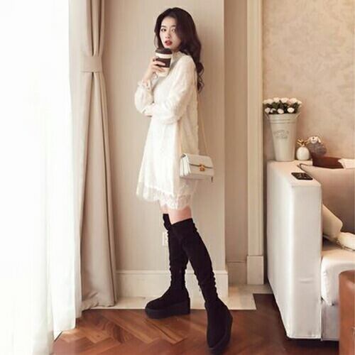 レースが印象的なミニ丈ワンピース。