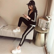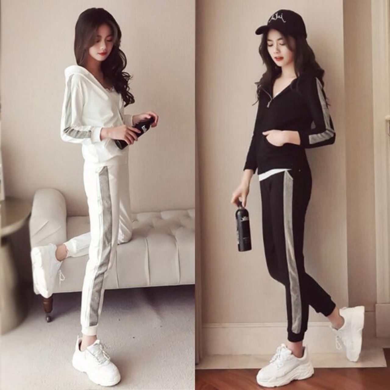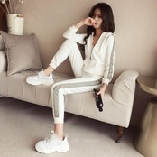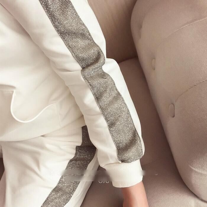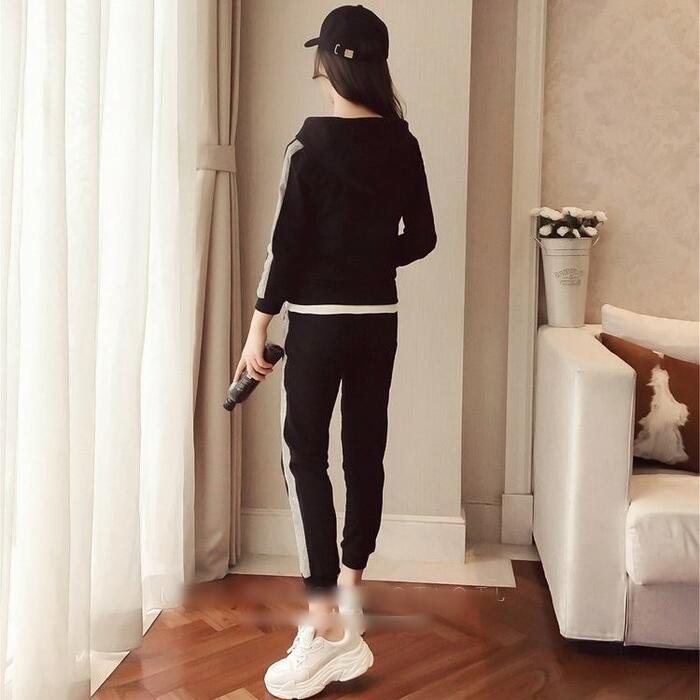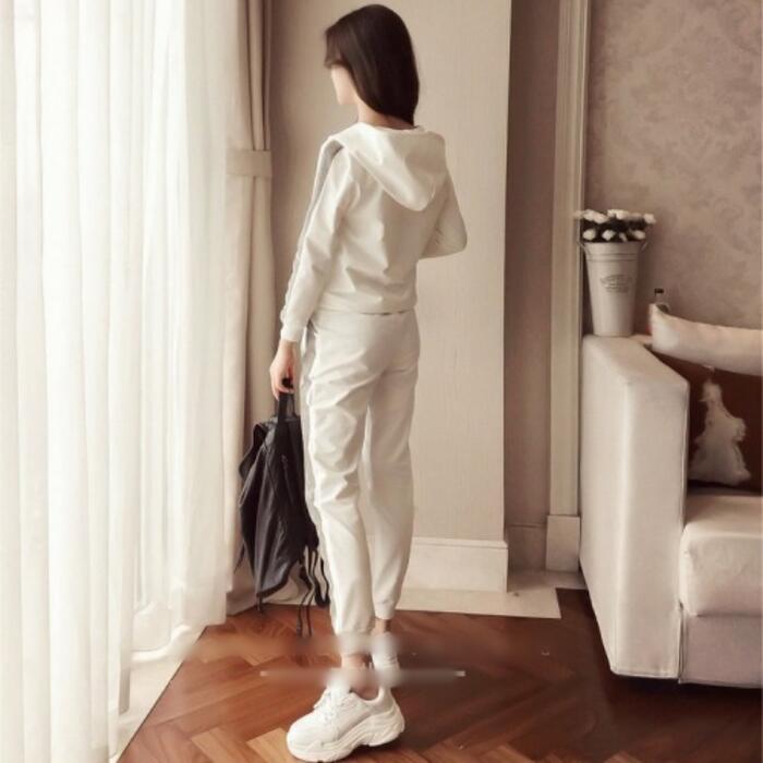 全2色 大きいサイズセットアップ 2点セット パーカー トップス ライン パンツ フーディー 長袖 スポーティ ロングパンツ おしゃれ 大人可愛い カジュアル 楽ちん アウトドア ワークアウト リラックス ホワイト 白 ブラック 黒 春 秋 冬 20代 30代 40代 50代