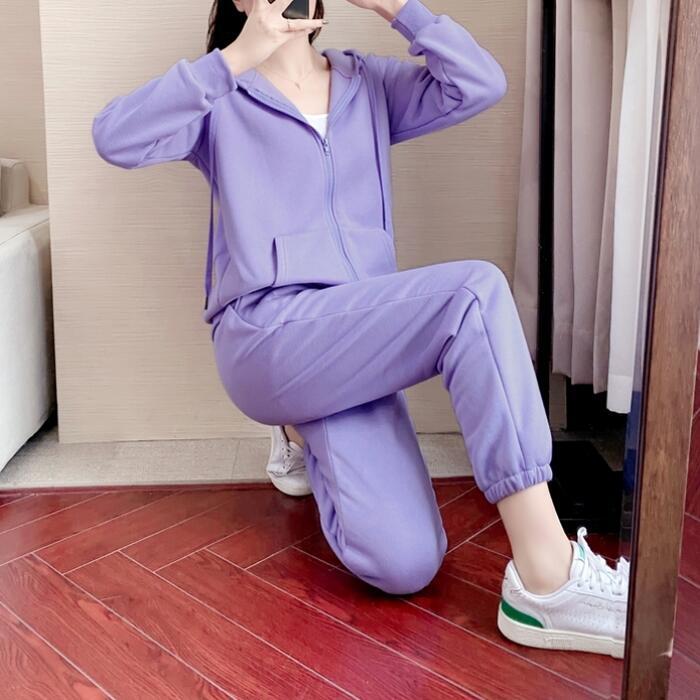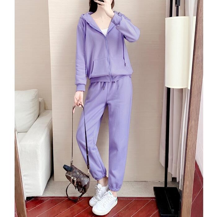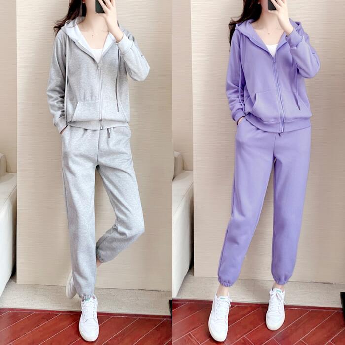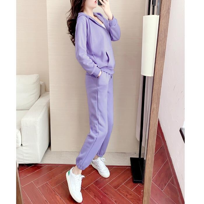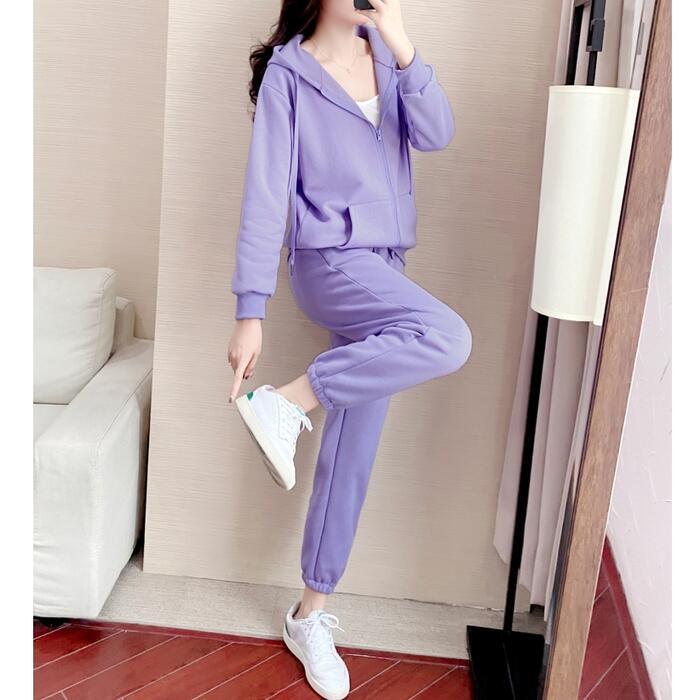 全2色 大きいサイズセットアップ 2点セット スウェット パーカー トップス パンツ フーディー 長袖 ジャージ スポーティ ロングパンツ 裏起毛 おしゃれ カジュアル 楽ちん アウトドア ワークアウト リラックス グレー パープル 春 秋 冬 20代 30代 40代 50代