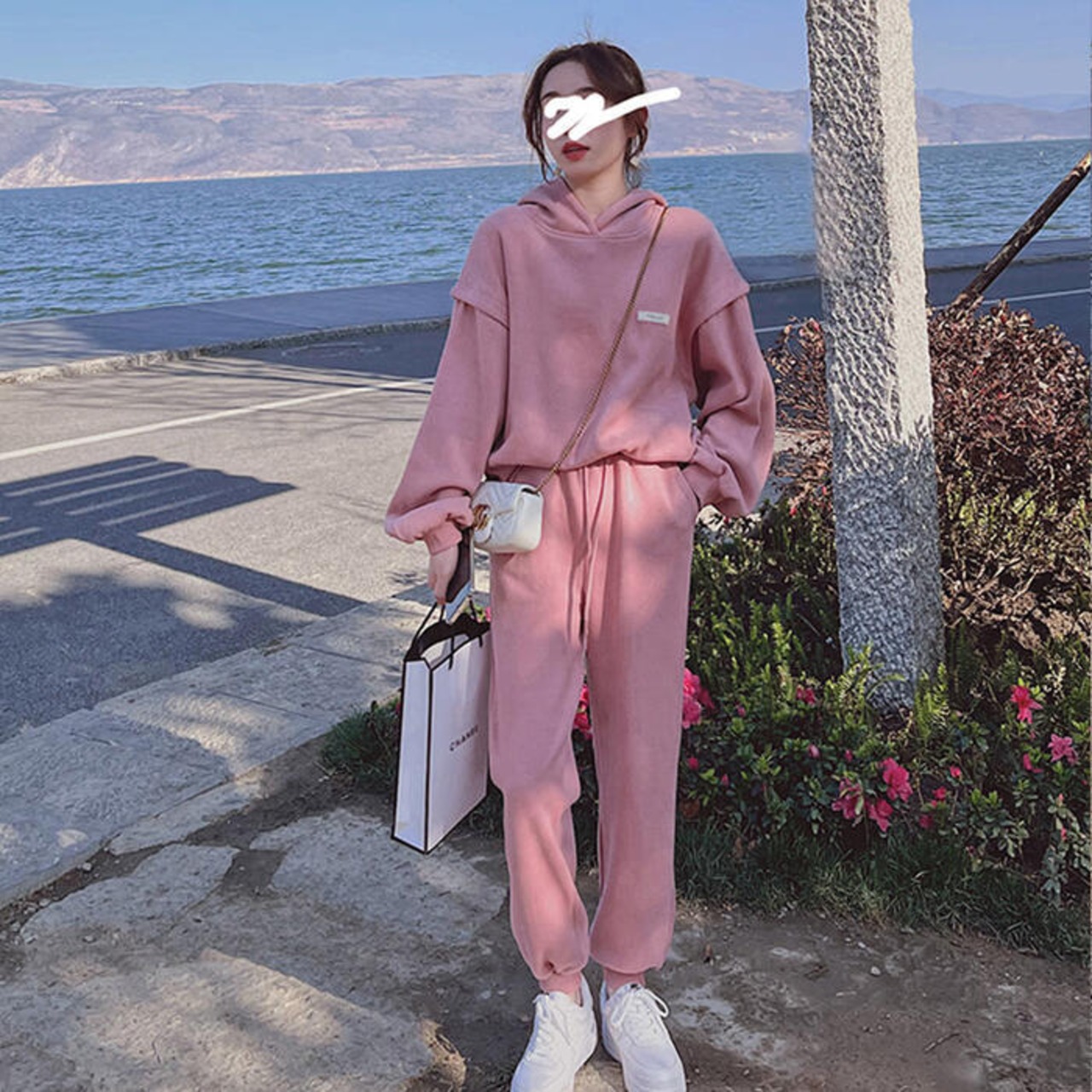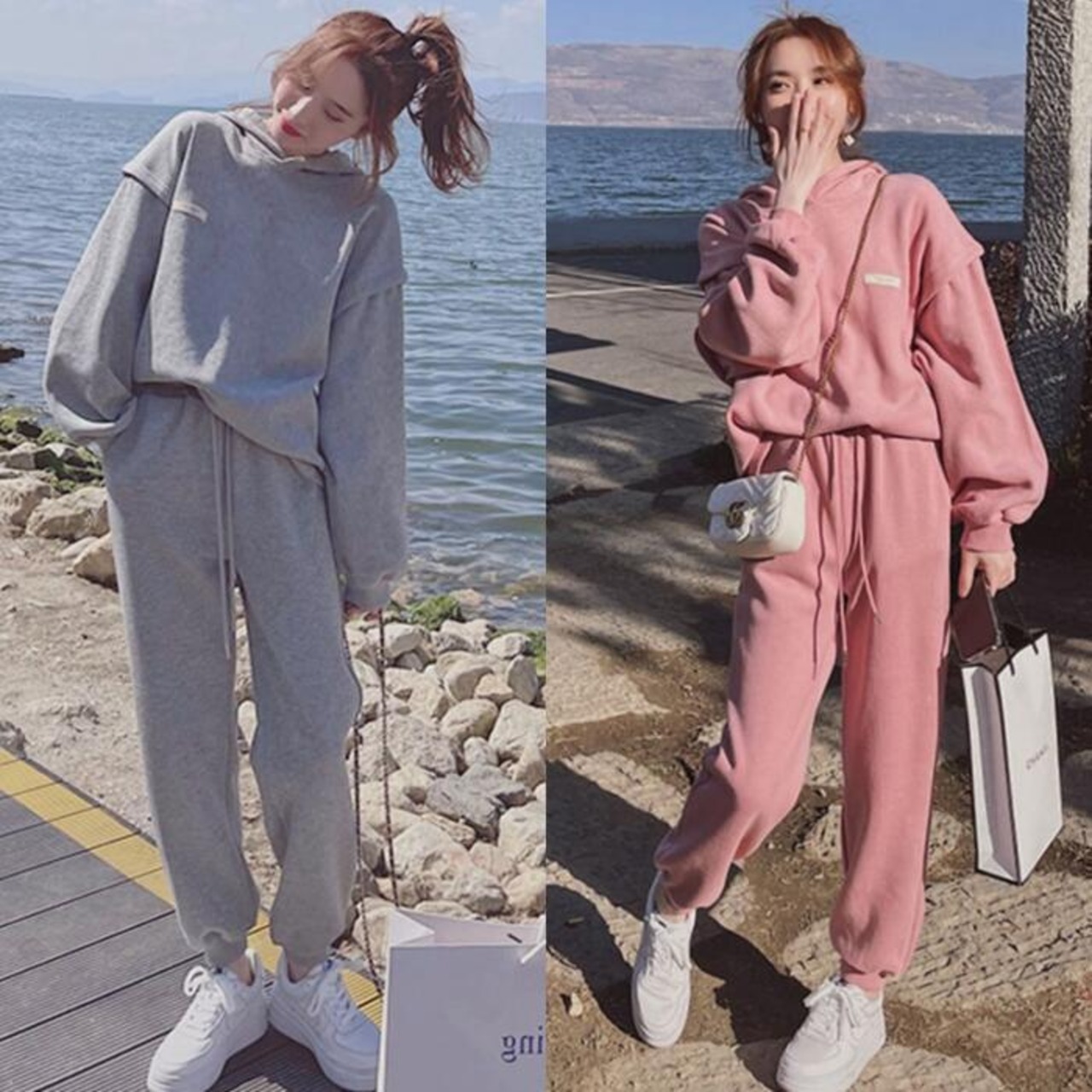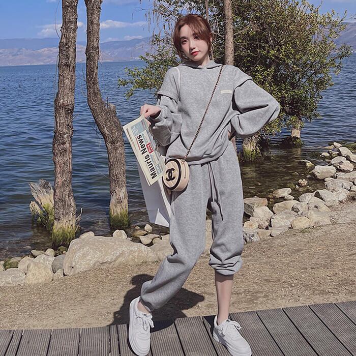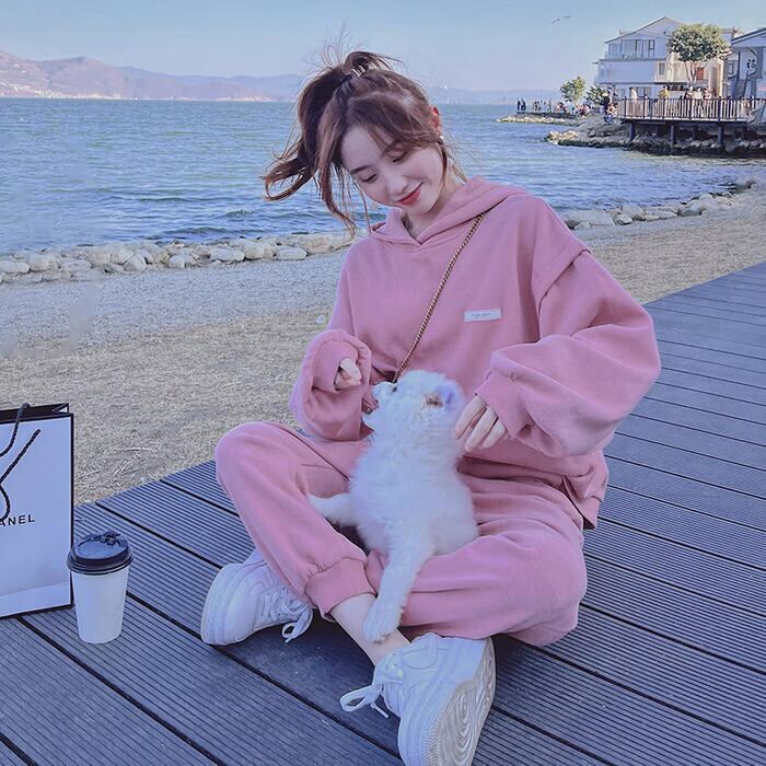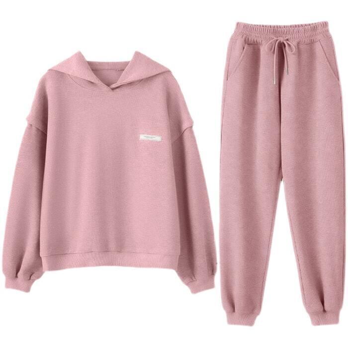 全2色 セットアップ 2点セット パーカー トップス プルオーバー パンツ フーディー 長袖 スポーティ ロングパンツ おしゃれ 大人可愛い カジュアル 楽ちん アウトドア ワークアウト リラックス ピンク グレー 春 秋 冬 20代 30代 40代 50代