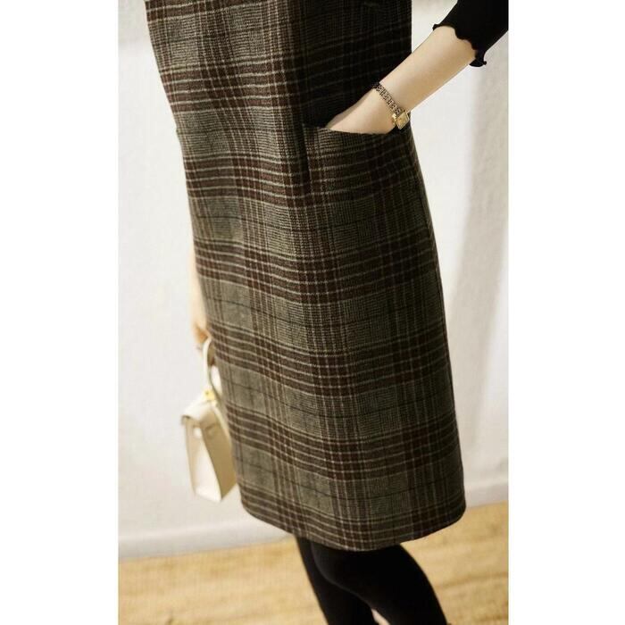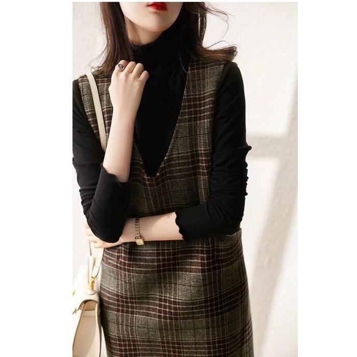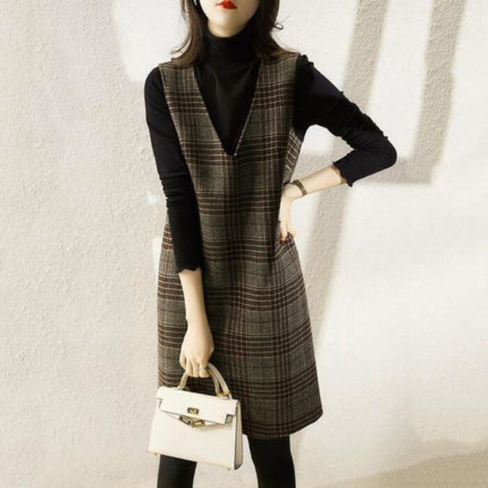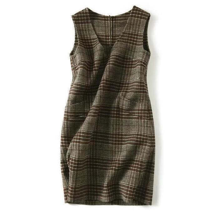 ワンピース ジャンパースカート サロペットスカート ひざ丈 グレンチェック レディース ワンピ ドレス ノースリーブ きれいめ カジュアル 大人可愛い ゆったり 体型カバー 大きいサイズ 春 秋 冬 20代 30代 40代 50代