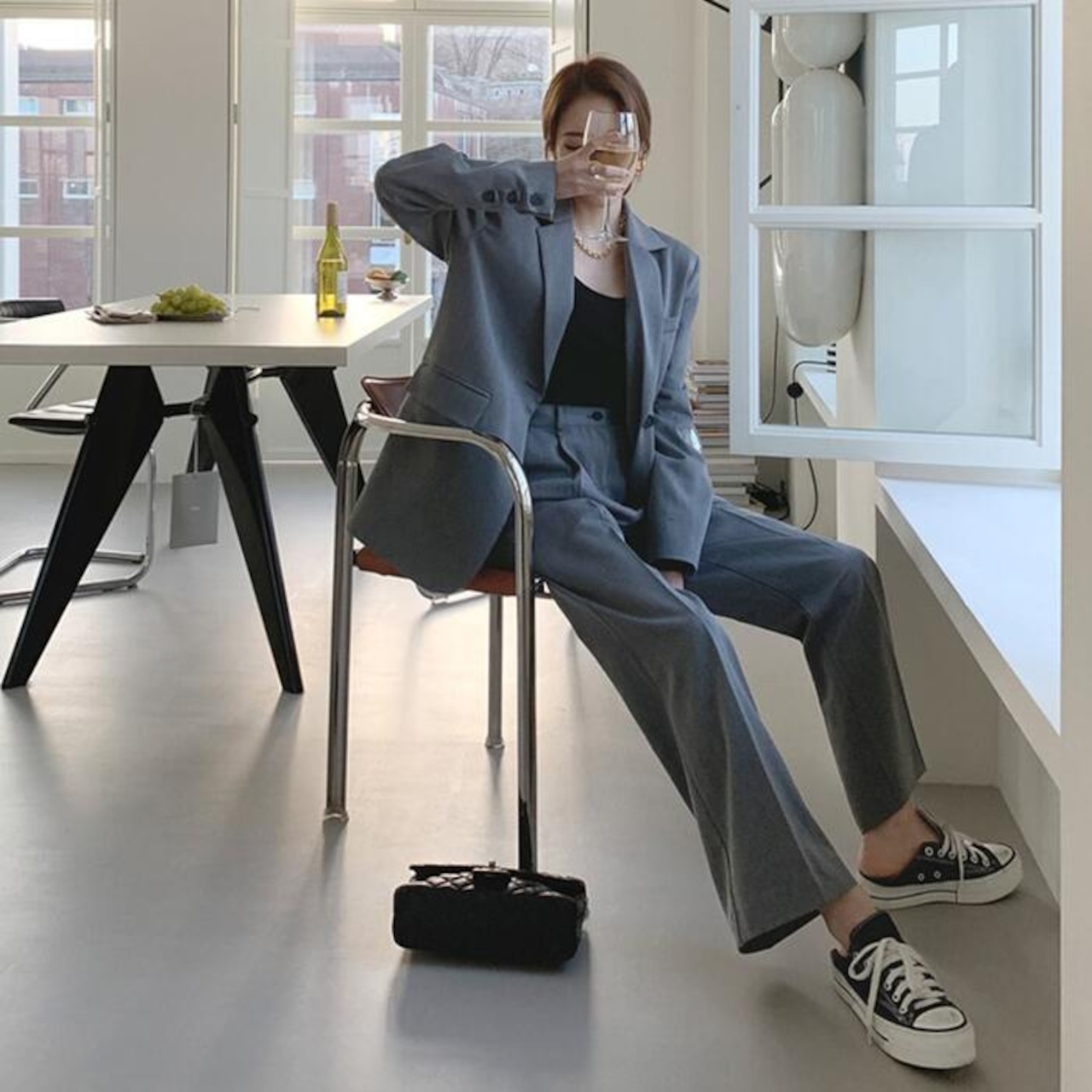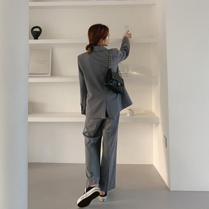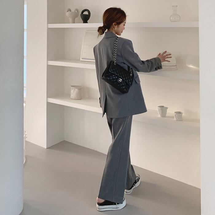 ヒールにもスニーカにも合わせられるベーシックなスーツです♪