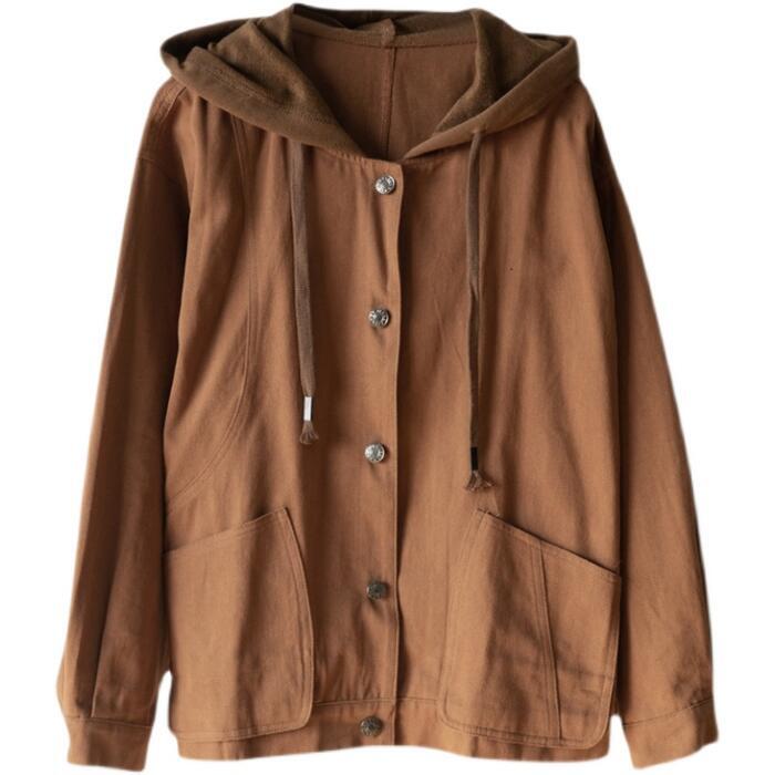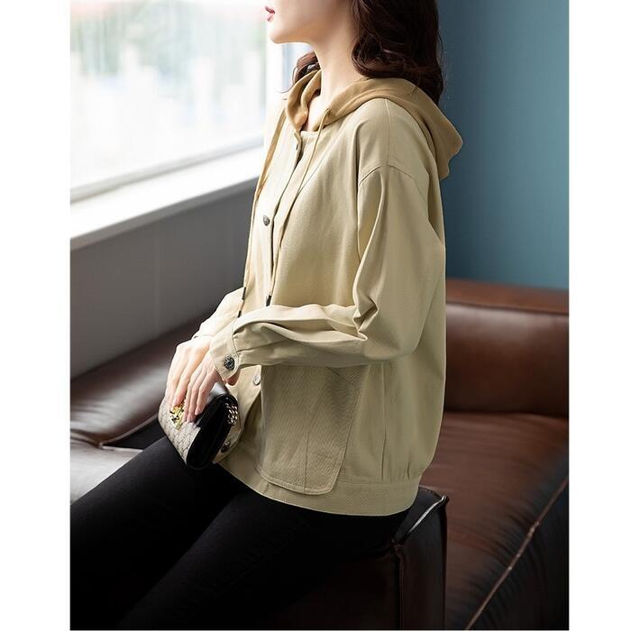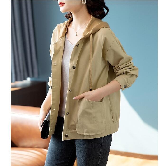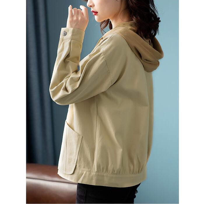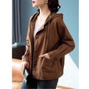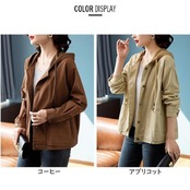 全2色 大きいサイズジャケット ブルゾン フード付き コート レディース ジャンパー カジュアル アウター 羽織 長袖 大人 可愛い ミドル丈 かっこいい シンプル カーディガン スポーティ ブラウン ベージュ 春 秋 冬 20代 30代 40代 50代