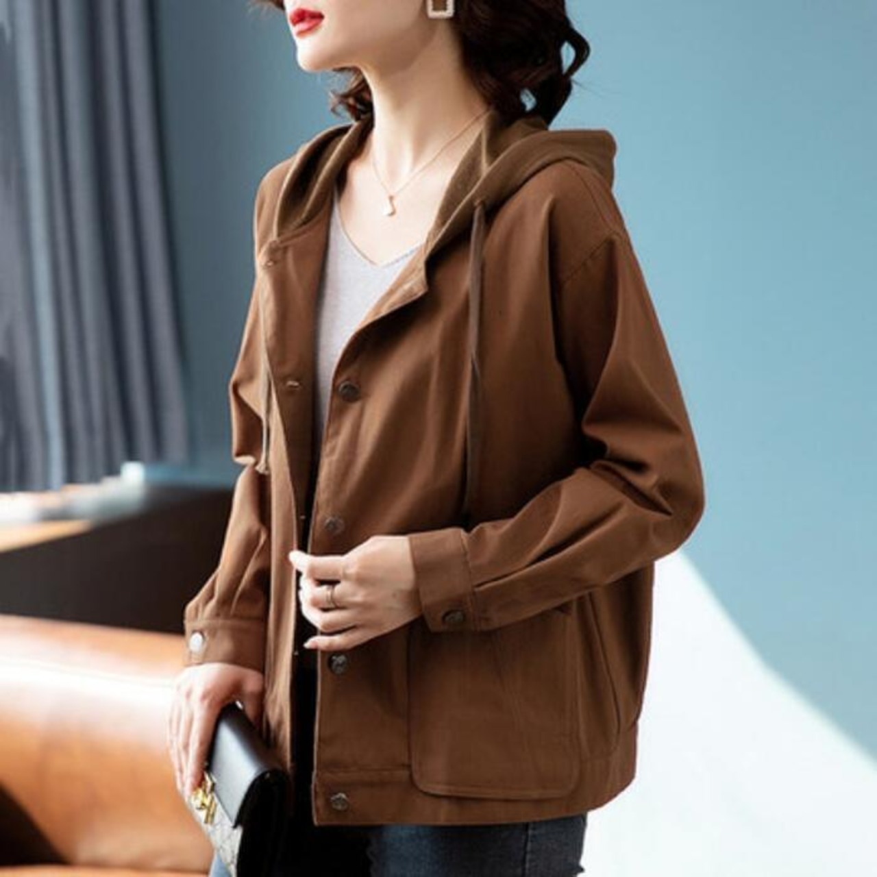 少し肌寒い日にさっと羽織れるフード付きジャケット。