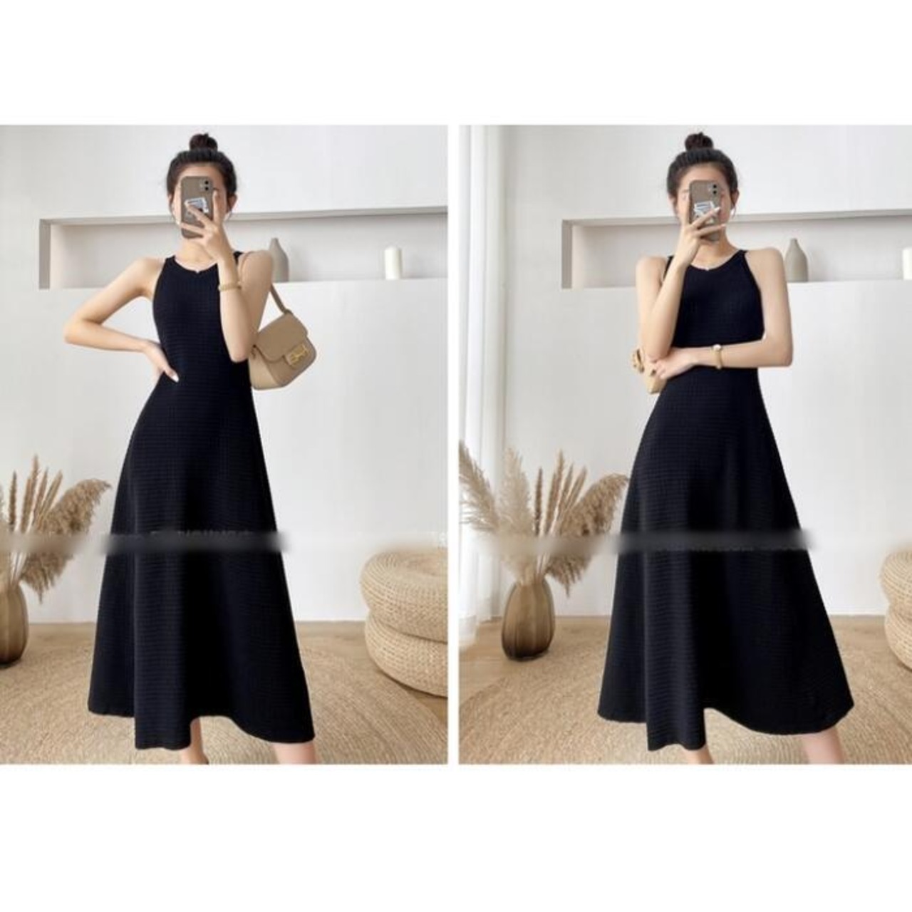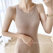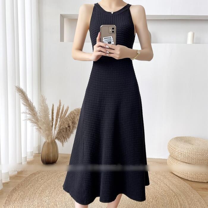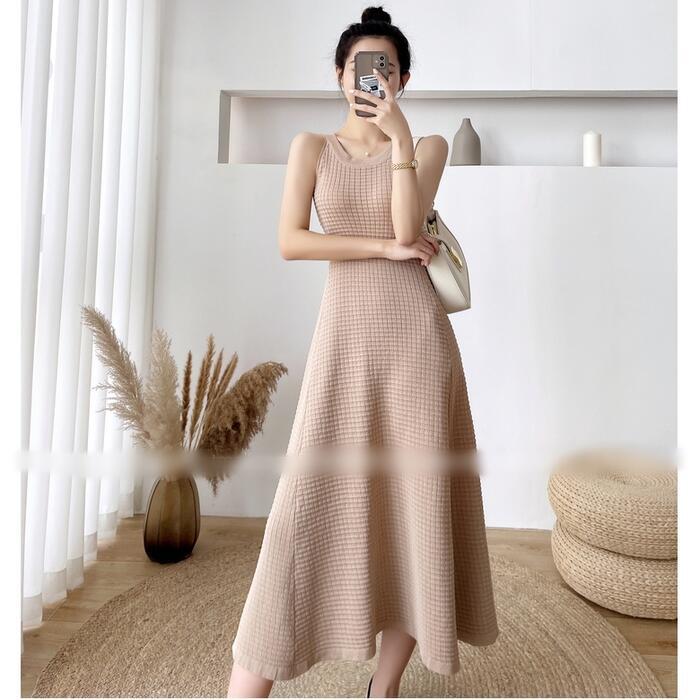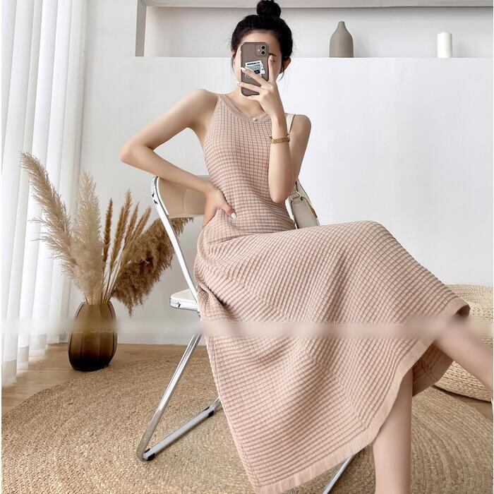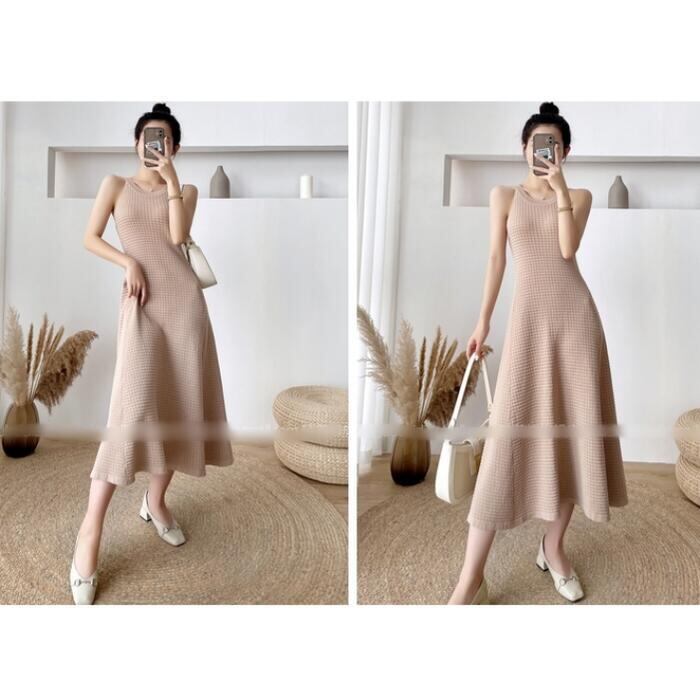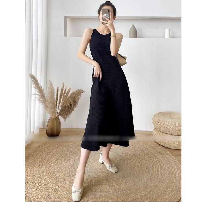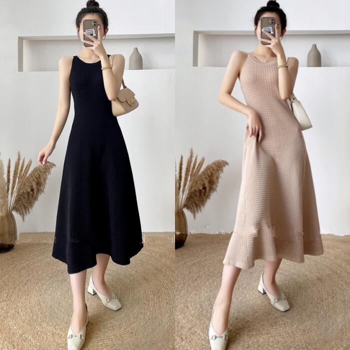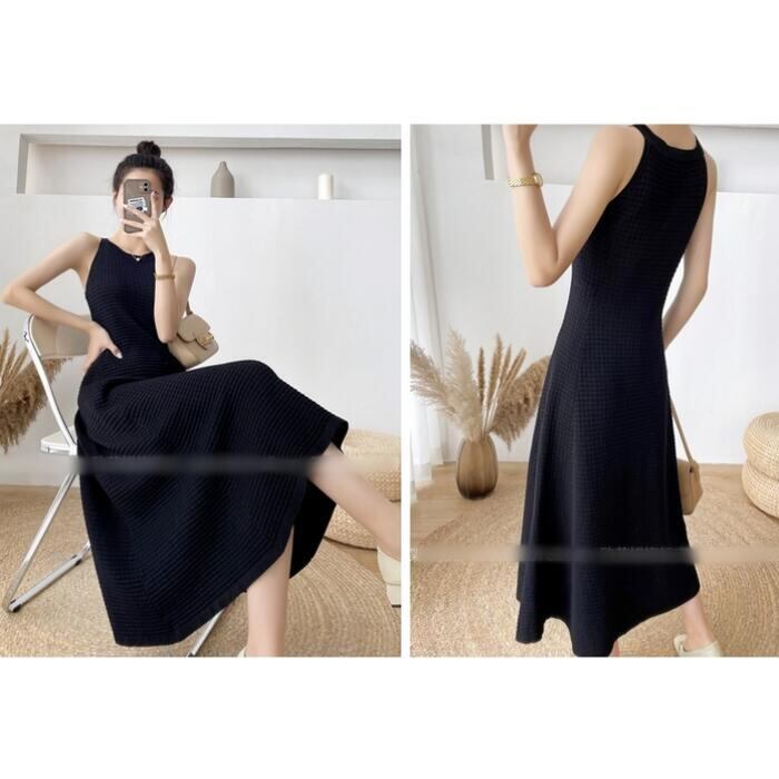 全2色 ワンピース キャミワンピース ミモレ丈 ワッフル レディース ワンピ ドレス ノースリーブ きれいめ カジュアル 大人可愛い リラックス 楽ちん フェミニン Aライン リゾート カーキ ブラック 黒 春 秋 夏 20代 30代 40代 50代