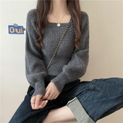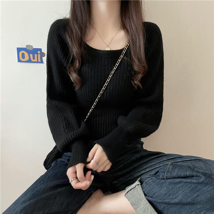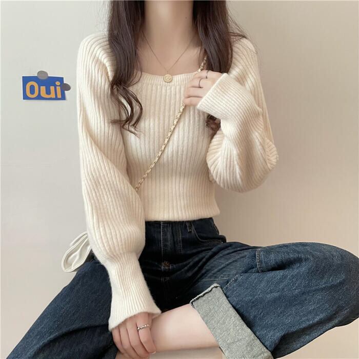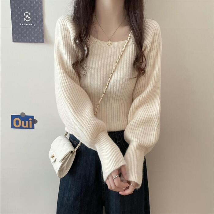 全3色 大きいサイズトップス ニット スクエアネック セーター 長袖 パフスリーブ レディース カジュアル おしゃれ フェミニン 大人可愛い きれいめ シンプル ベーシック カットソー 通勤 ホワイト 白 ベージュ ブラック 黒 グレー 春 秋 冬 20代 30代 40代 50代