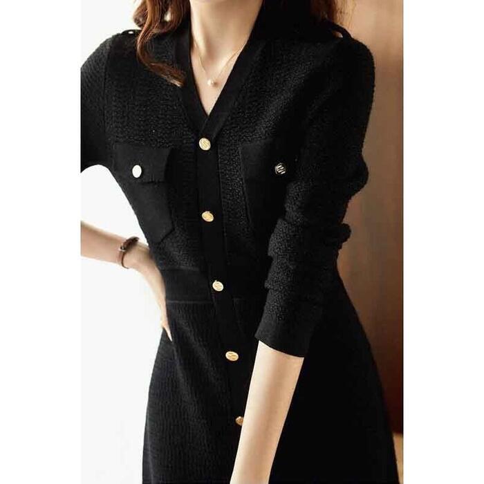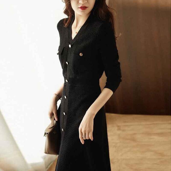ワンピース ロングワンピ 袖あり ミモレ丈 Vネック レディース ワンピ ドレス 長袖 きれいめ エレガント カジュアル 大人可愛い Aライン フェミニン ハイウエスト 通勤 シンプル ブラック 黒 春 秋 冬 20代 30代 40代 50代