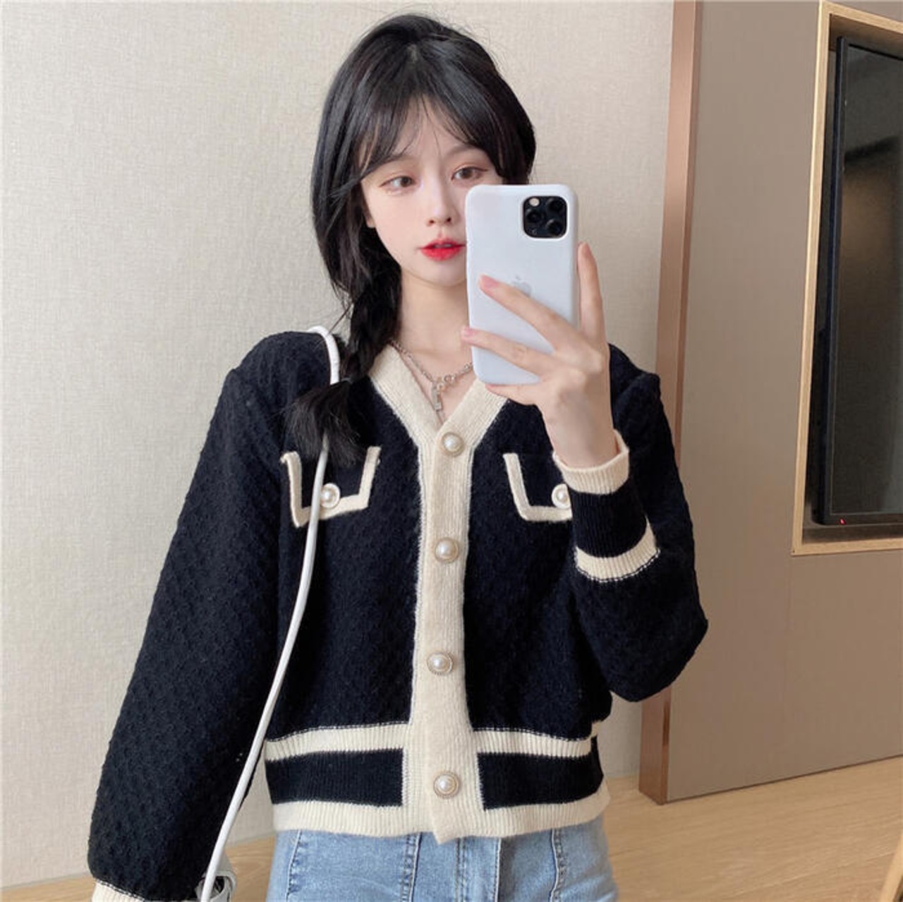 モノトーンカラーが上品なVネックカーディガン。