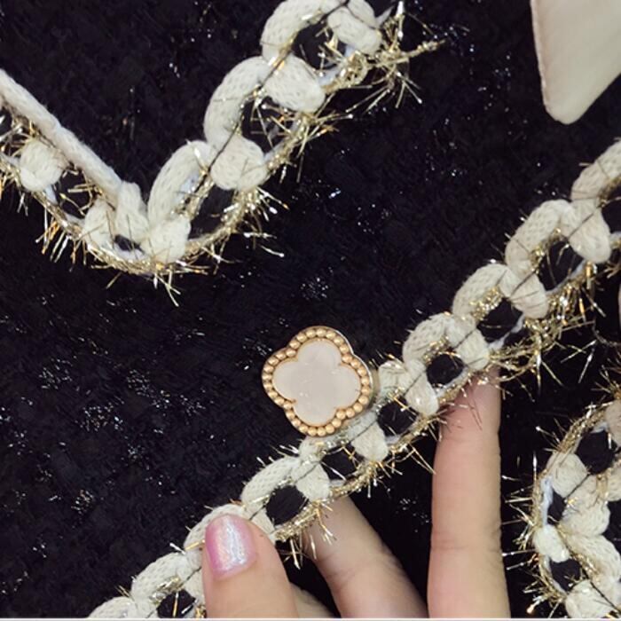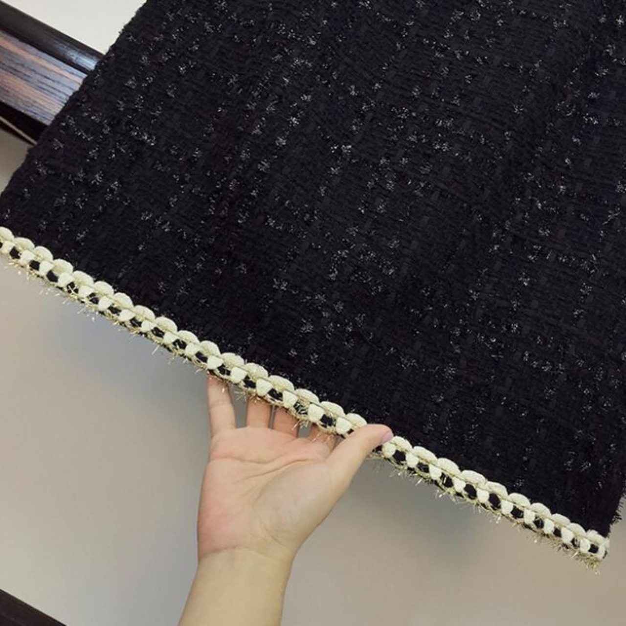ガーリーなデザインながらもツイード調生地でエレガントな仕上がりに。