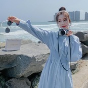 清涼感のあるカラーが春らしい印象のシャツワンピース。