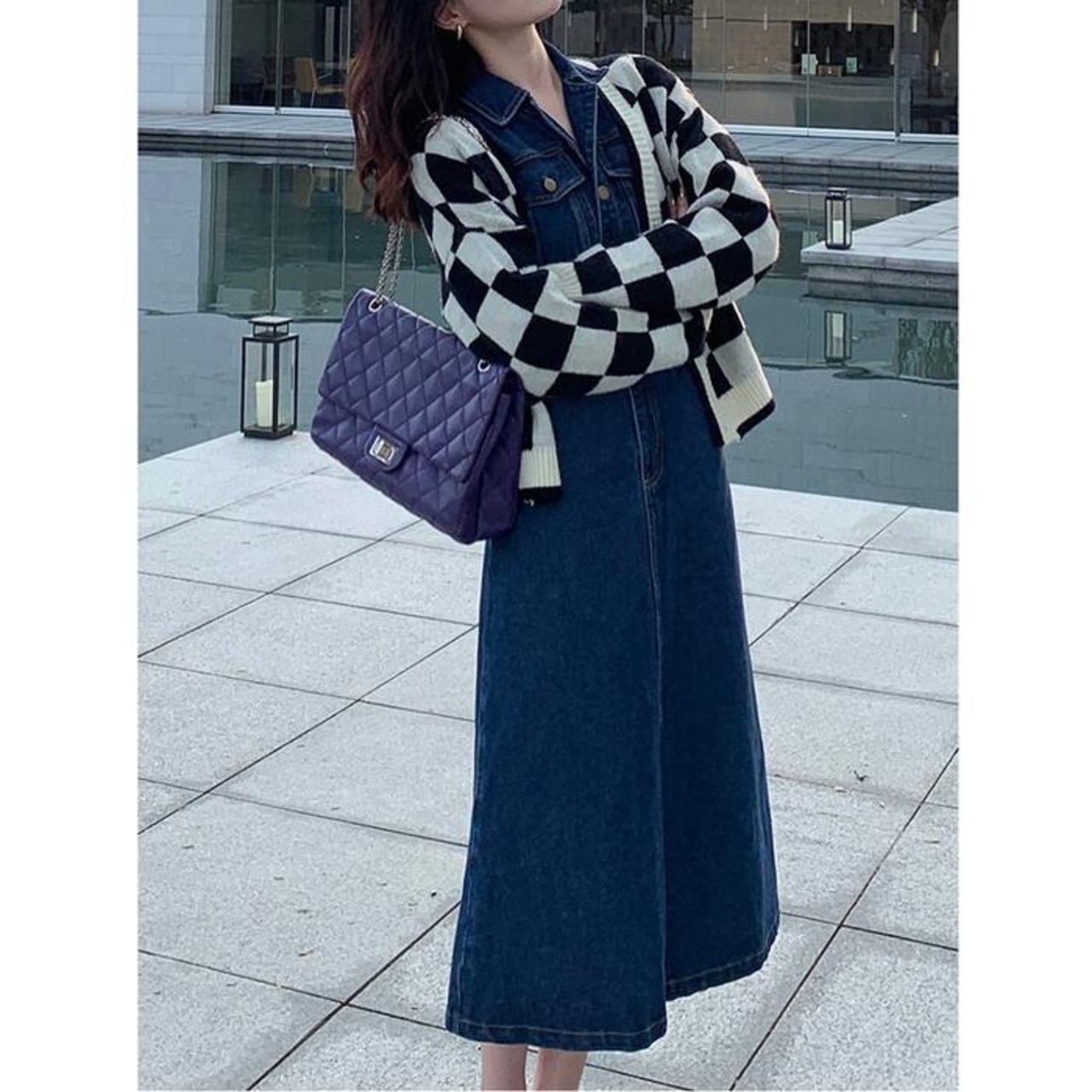 すっきりしたAラインシルエットのデニムワンピース。