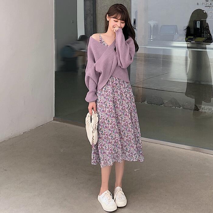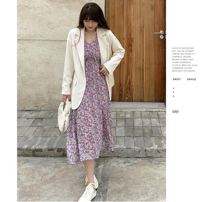小花柄が大人ガーリーなキャミソールワンピース。