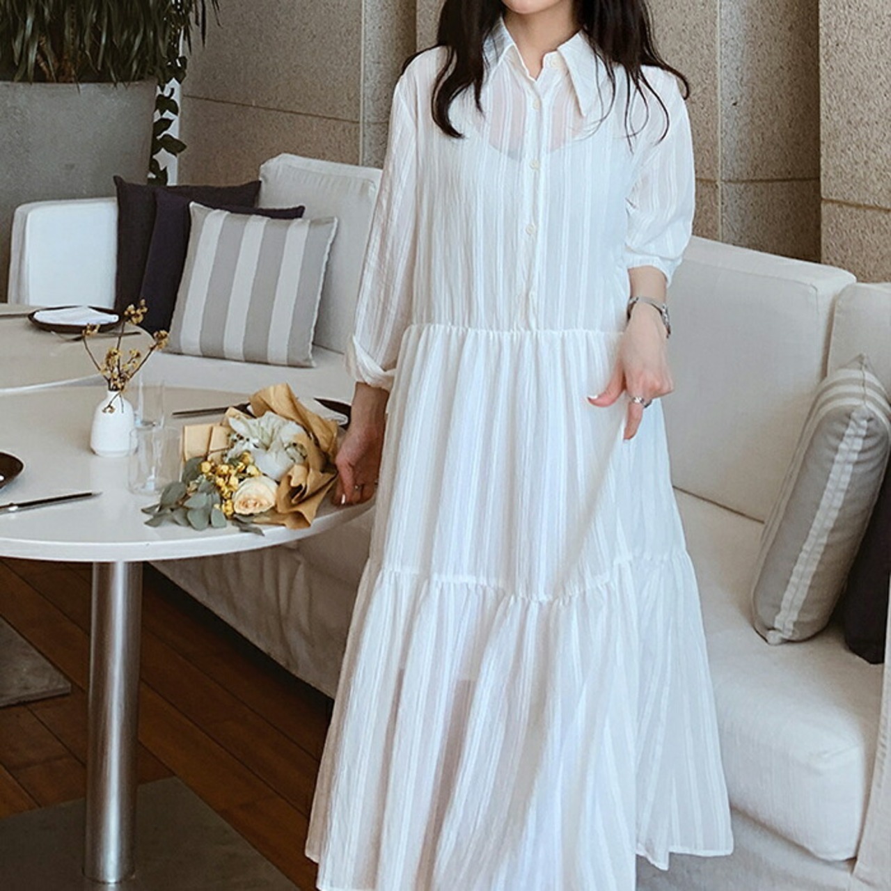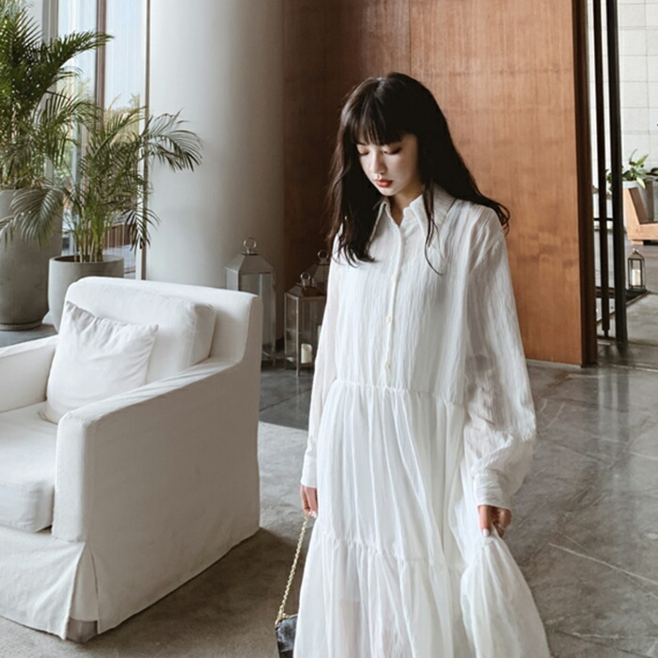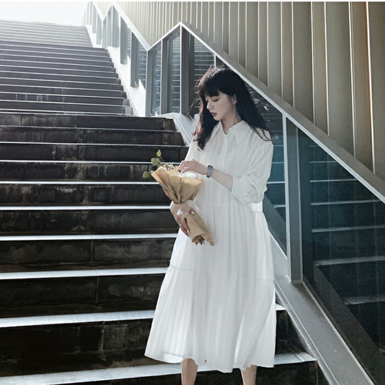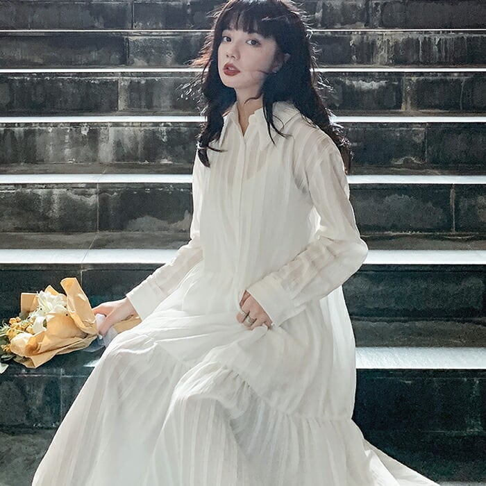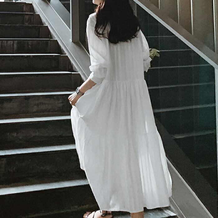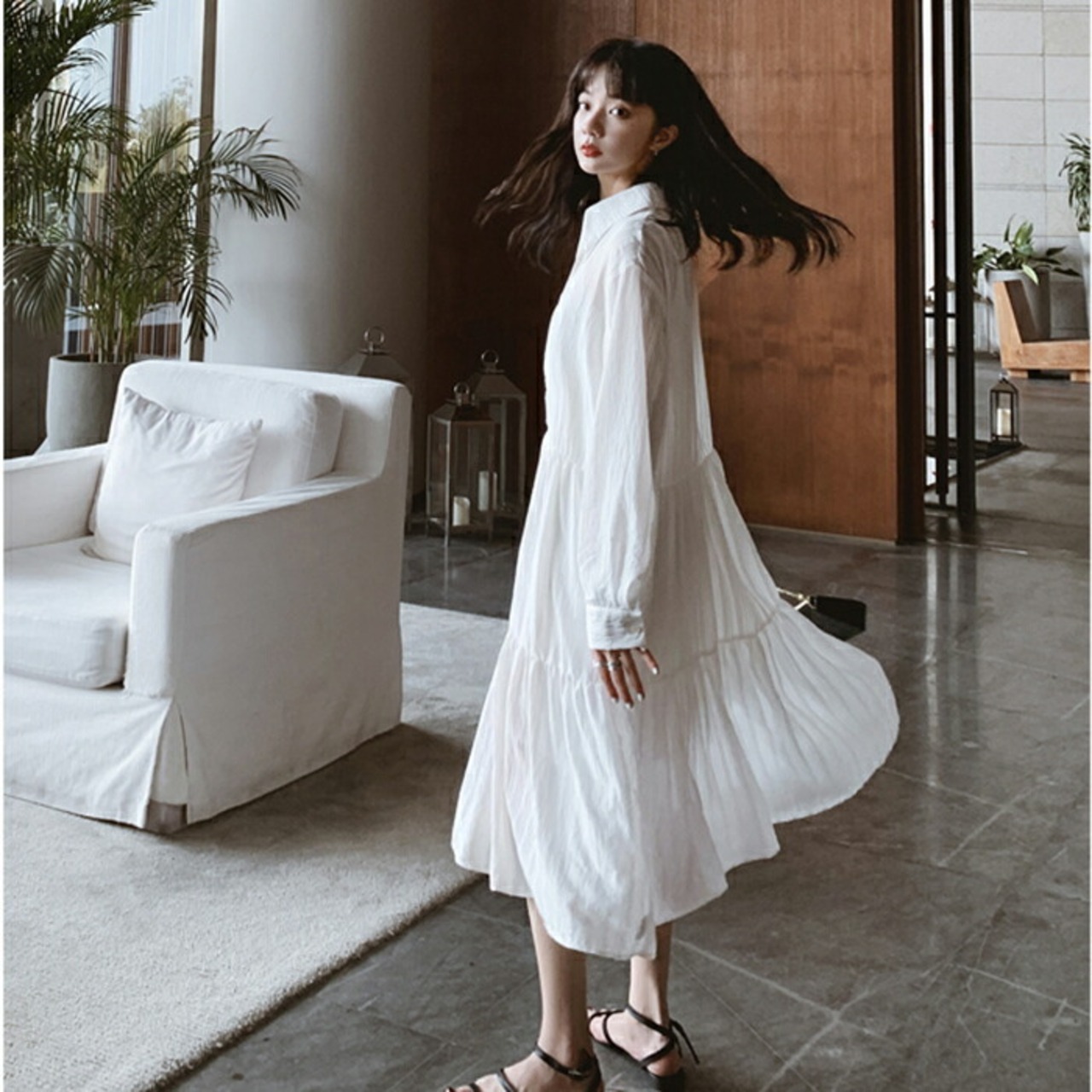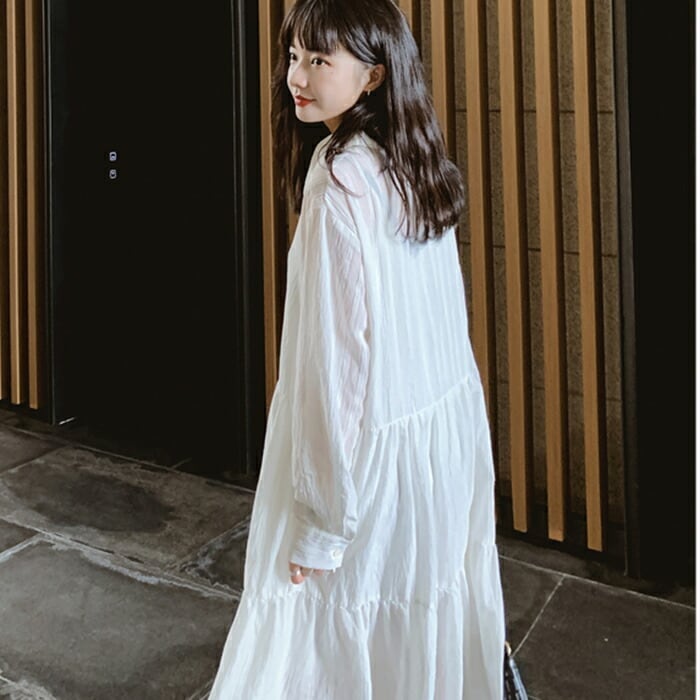 大きいサイズ 大人可愛い フェミニンワンピース レディース 大きいサイズ おしゃれ カジュアル かわいい シンプル ミモレ丈 ホワイト 白 長袖シャツ 春 秋 冬 20代 30代 40代