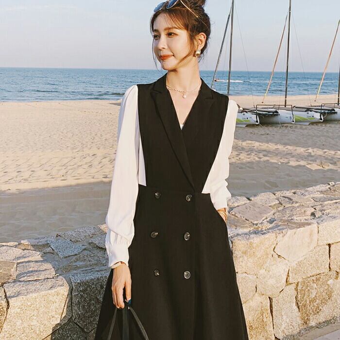マニッシュに着こなせるデザインワンピース。