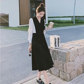 大きいサイズ 大人可愛い フェミニンワンピース レディース 大きいサイズ おしゃれ カジュアル かわいい シンプル ミモレ丈 ブラック 黒 サロペット ジャンパースカート 春 秋 冬 20代 30代 40代