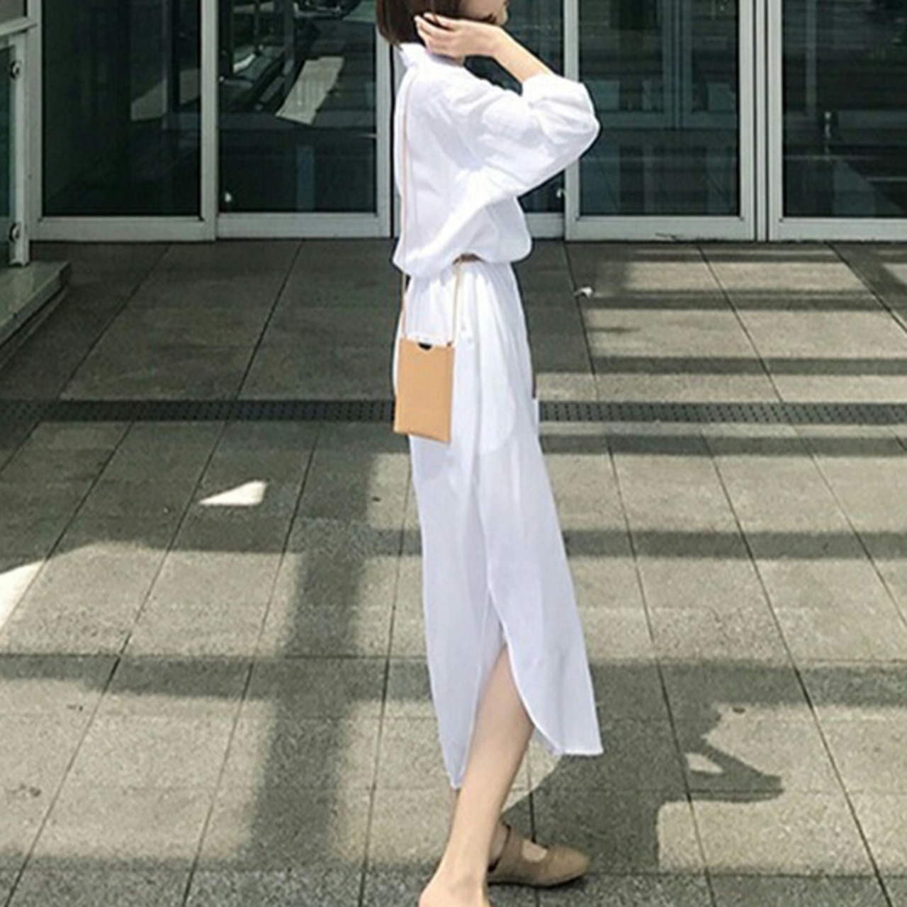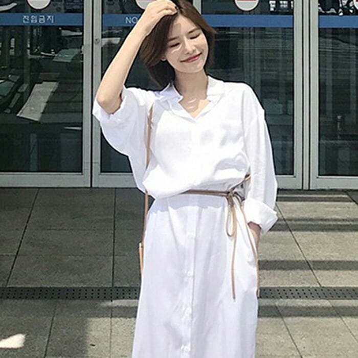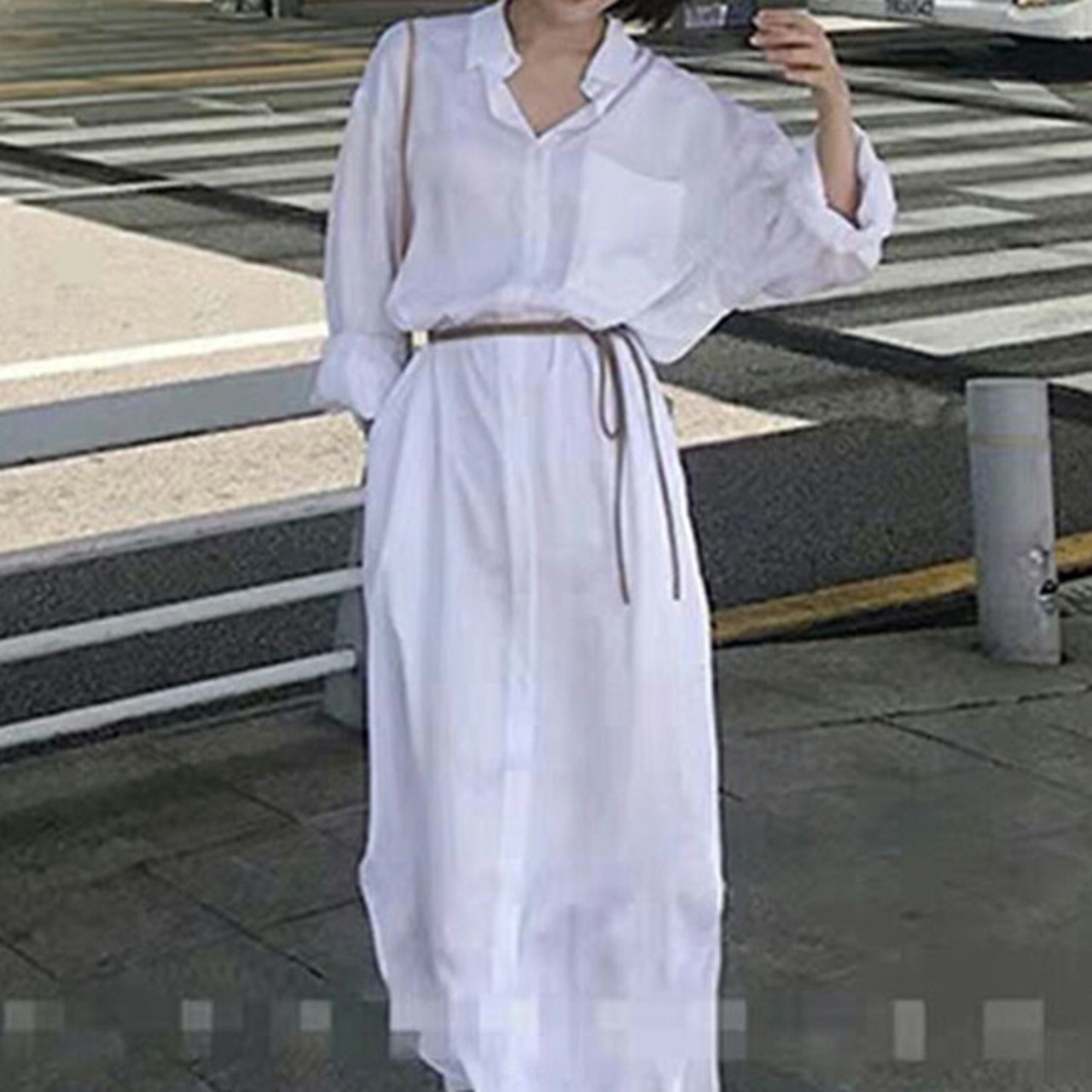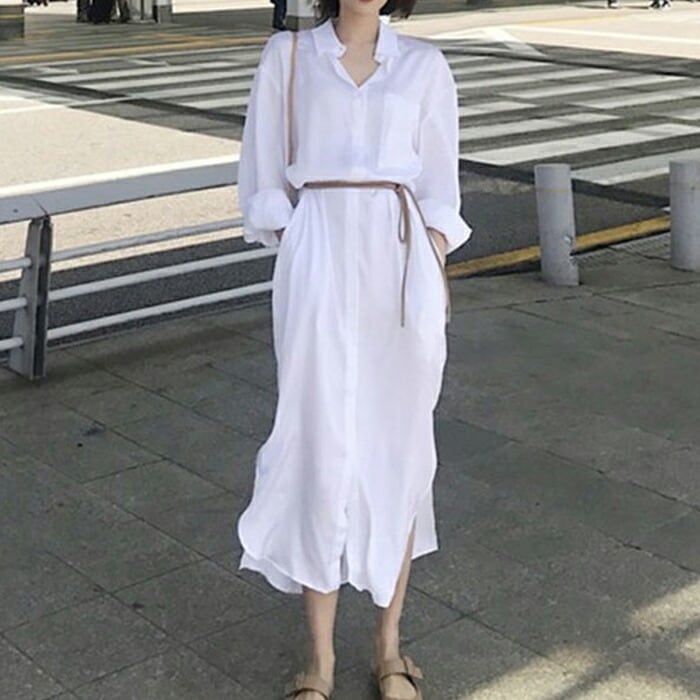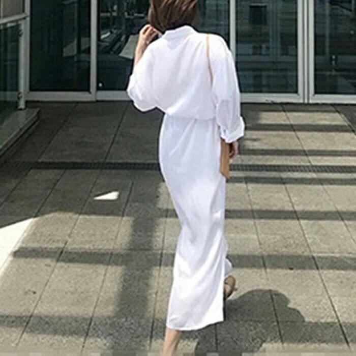 大きいサイズ 大人可愛い フェミニンワンピース レディース ウエストベルト シャツワンピース ワンピ ドレス 大きいサイズ おしゃれ カジュアル かわいい シンプル ミモレ丈 ホワイト 白 長袖シャツ 春 秋 冬 20代 30代 40代