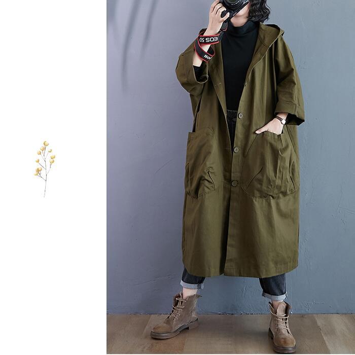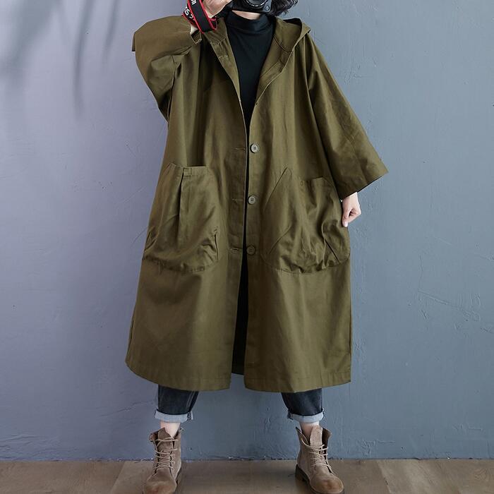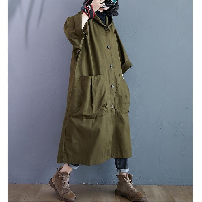 全2色 大きいサイズスプリングコート ジャケット 春 コート フード付き レディース カジュアル アウター 大人 ゆったり オーバーサイズ シンプル かっこいい ビッグシルエット おしゃれ 羽織 長袖 グリーン ブラック 黒 春 秋 冬 20代 30代 40代 50代