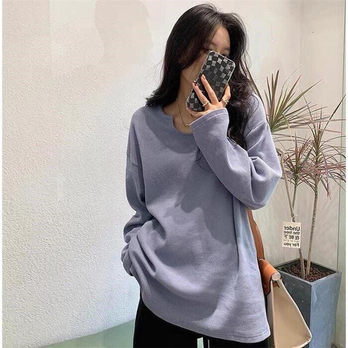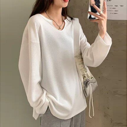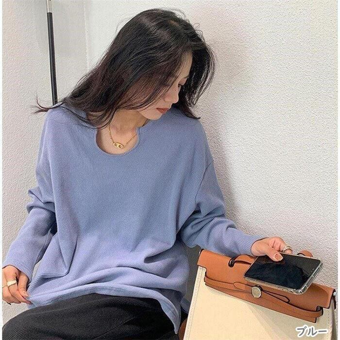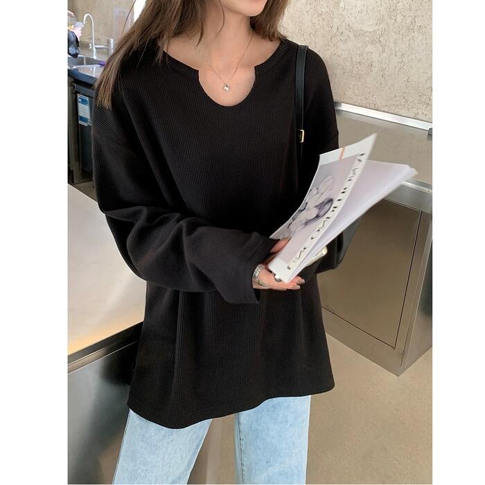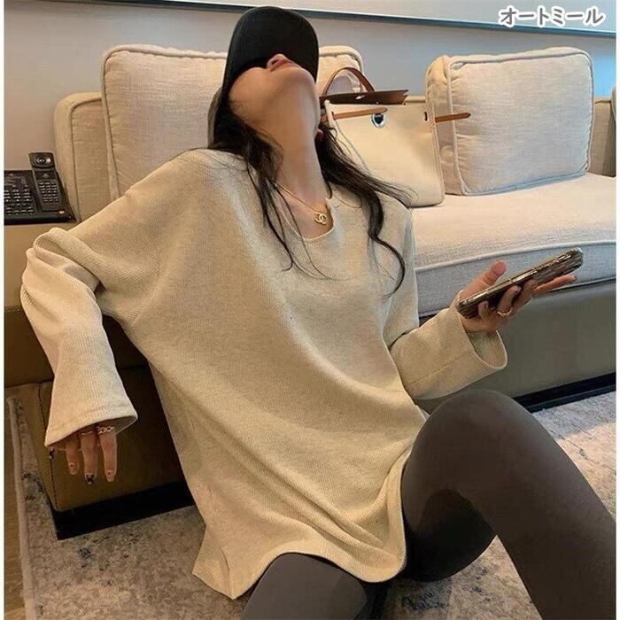 全4色 大きいサイズトップス サーマル カットソー 長袖 ワッフル Tシャツ レディース カジュアル ドロップショルダー おしゃれ フェミニン 大人可愛い シンプル ベーシック ゆったり ベージュ ブルー 青 ホワイト 白 ブラック 黒 春 夏 秋 20代 30代 40代 50代