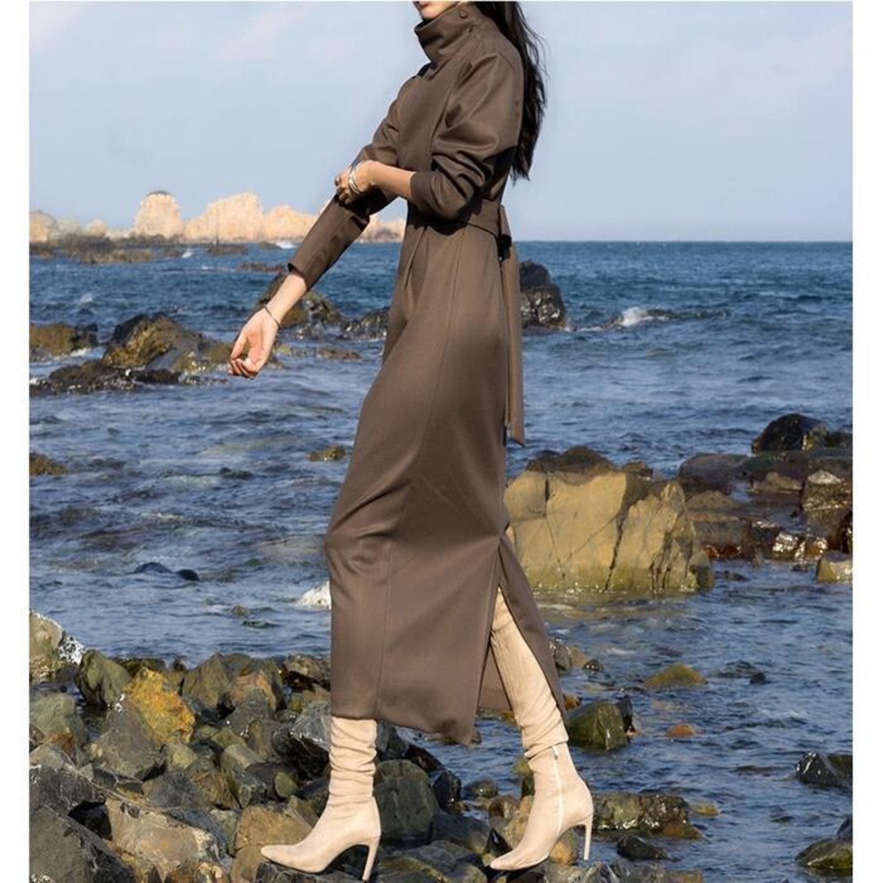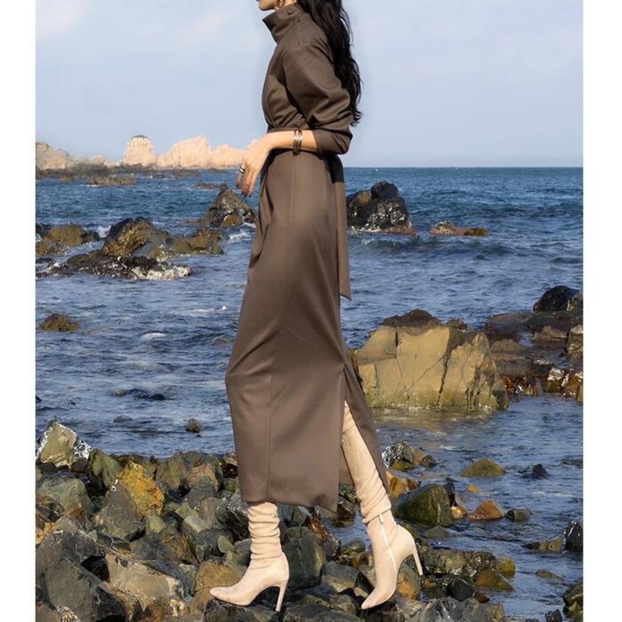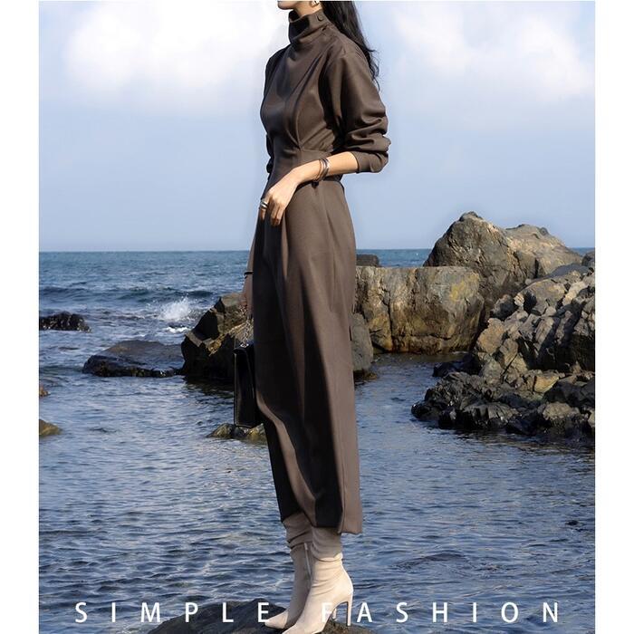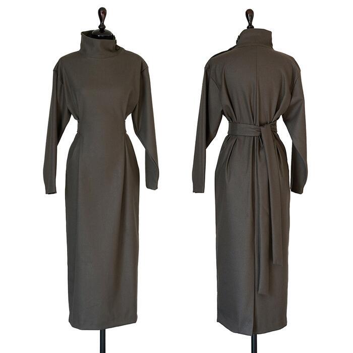 美しいシルエットのハイネックワンピース。