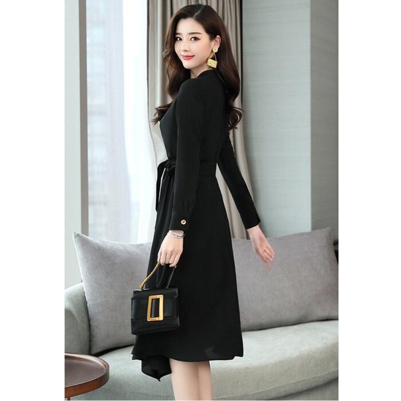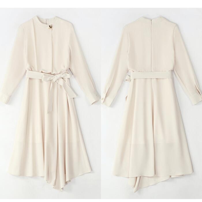 全2色 大きいサイズ アシンメトリー結婚式 パーティー ワンピース 袖あり ウエストリボン ミモレ丈 シアー レディース ワンピ ドレス 長袖 透け感 きれいめ 二次会 フォーマル セレモニー エレガント フェミニン お呼ばれ ベージュ ブラック 黒 春 秋 冬 20代 30代 40代 50代