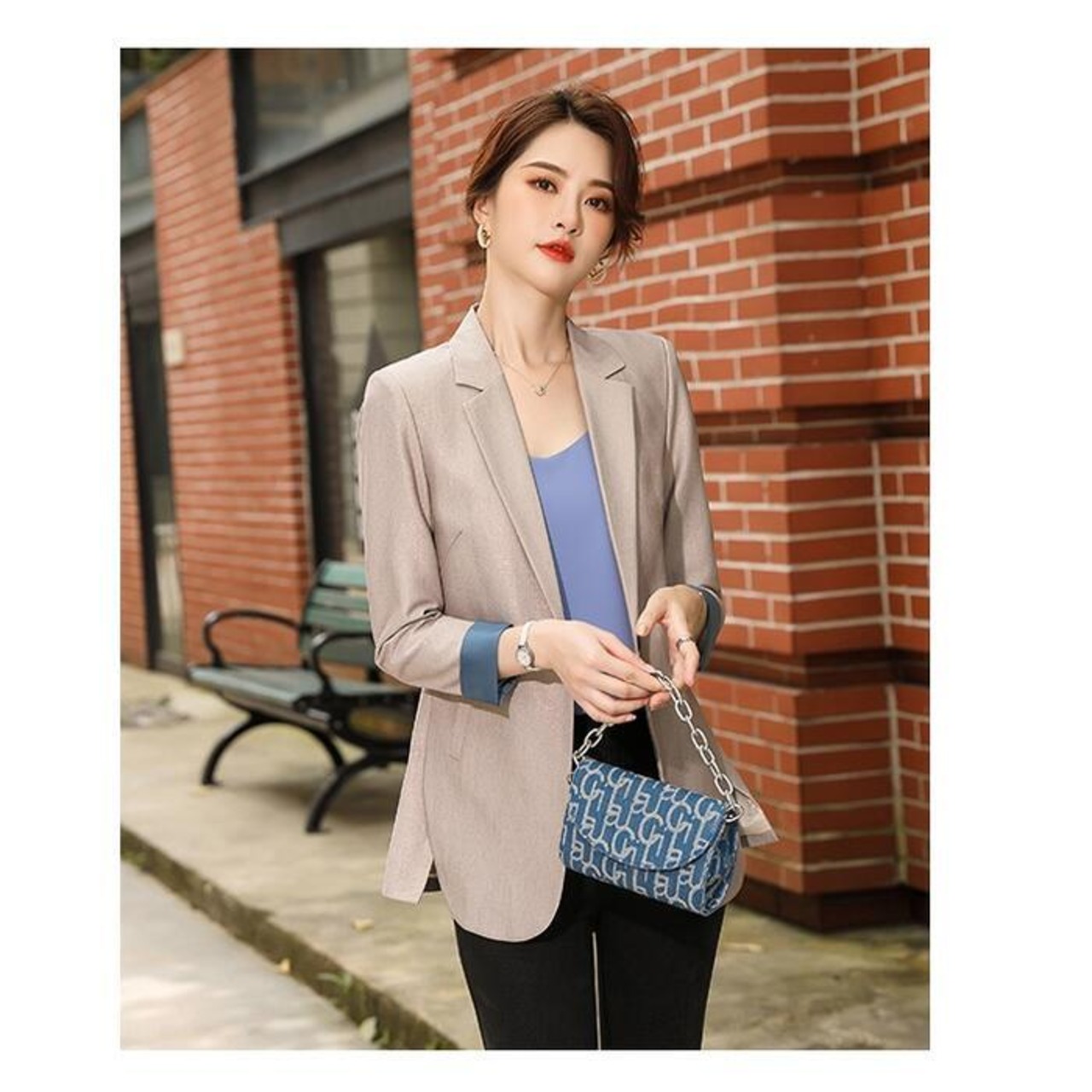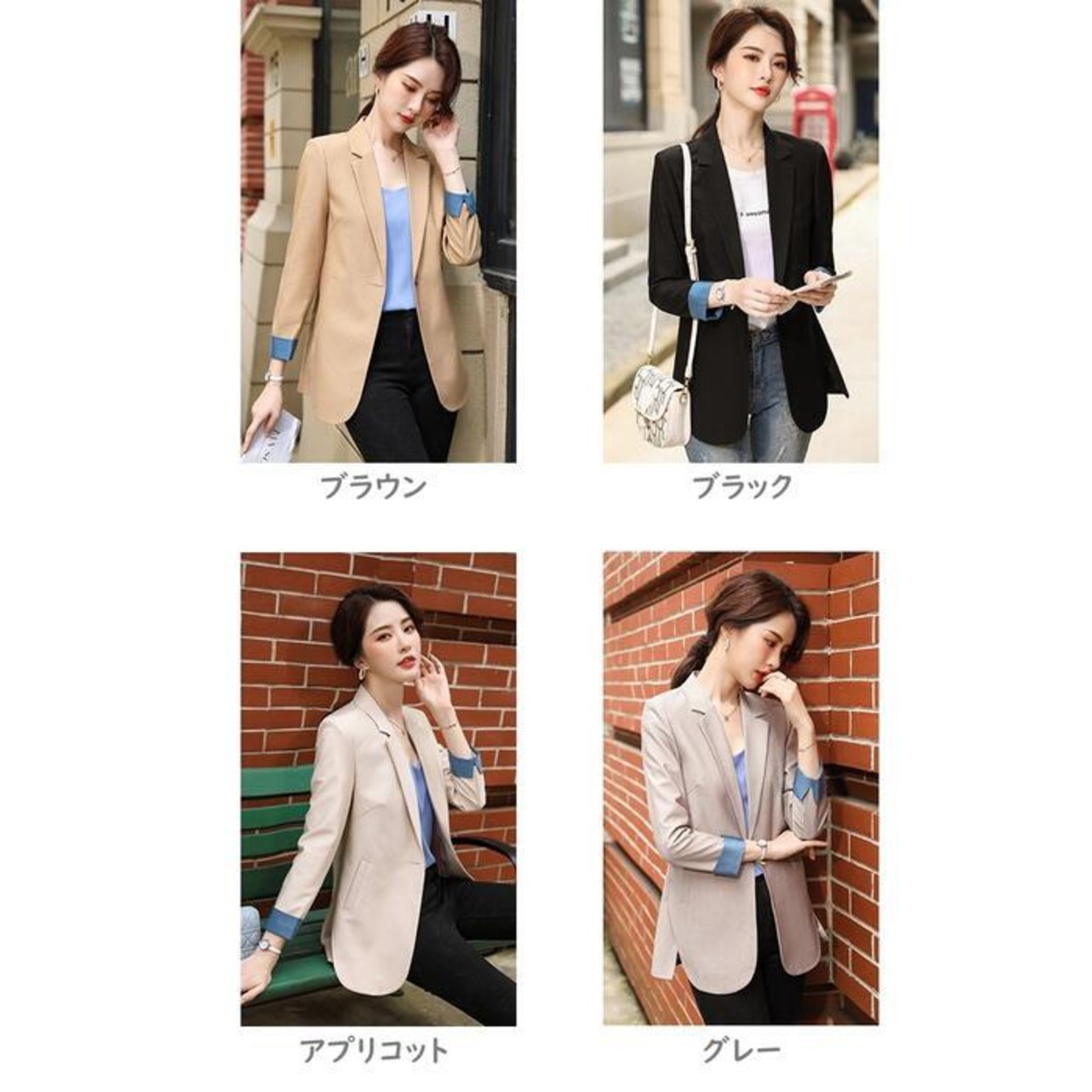 全4色 エレガント バイカラー入学式 ママスーツ レディース テーラード ジャケット 大きいサイズ おしゃれ 卒業式 母 卒園式 入園式 セレモニー 七五三 お宮参り 母親 ママ オフィス アウター ブラウン ベージュ ブラック 黒 グレー 春 秋 冬 20代 30代 40代 50代