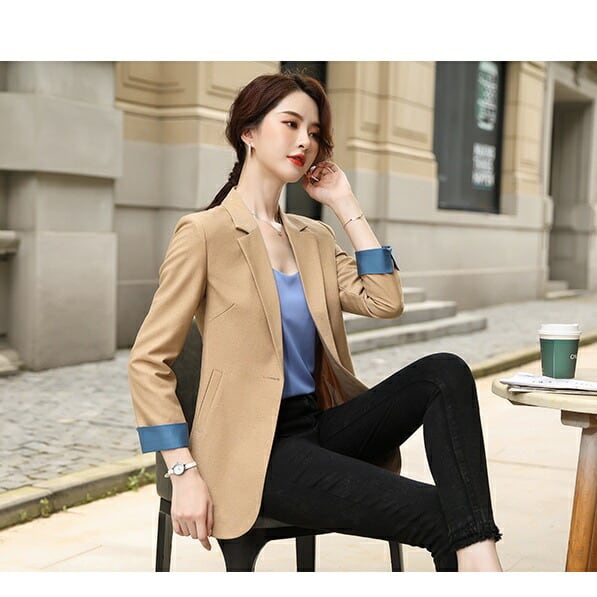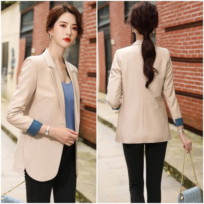 袖の配色デザインがポイントのテーラードジャケット。