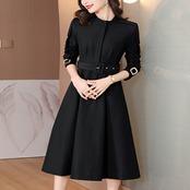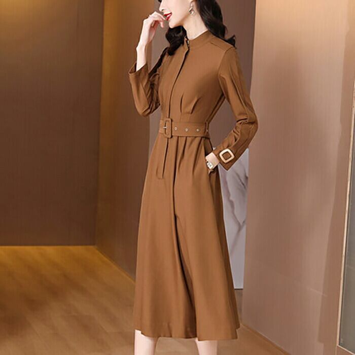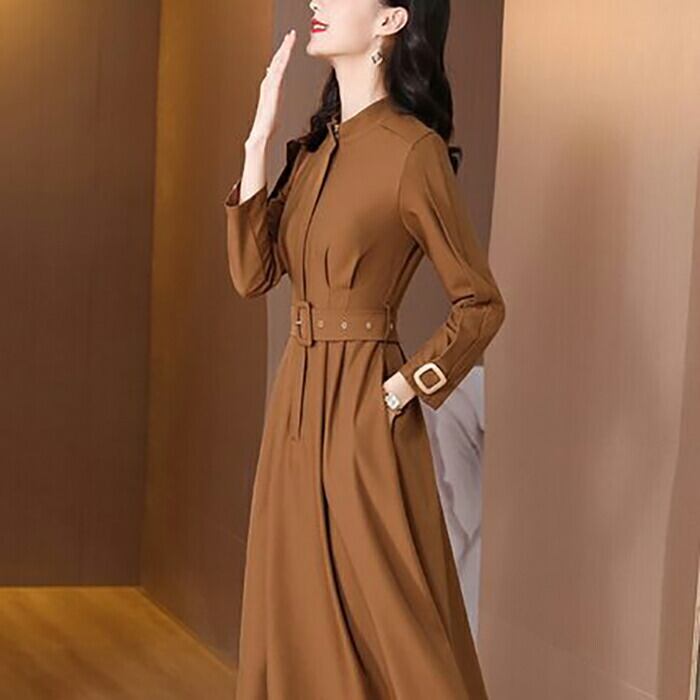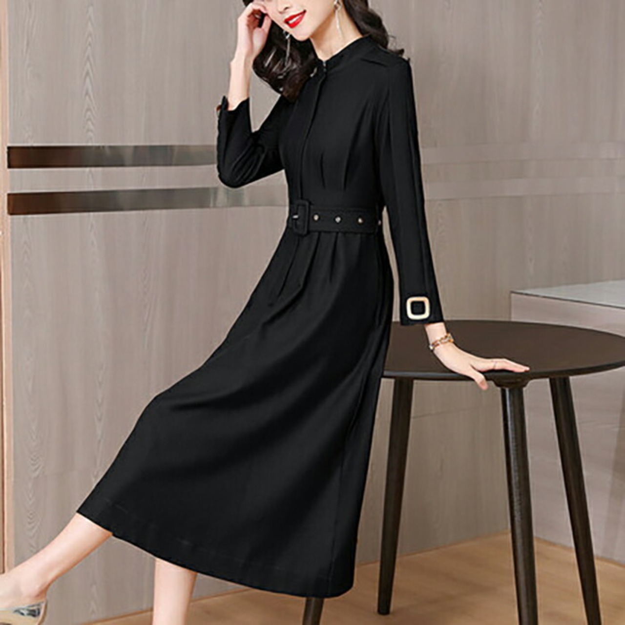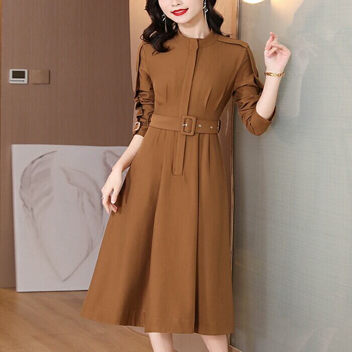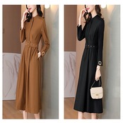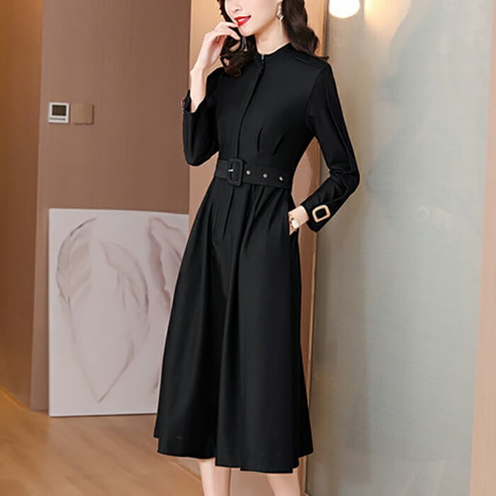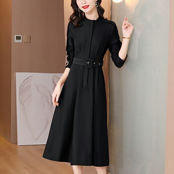 全2色 ワンピース レディース 袖あり ワンピ きれいめ 大人可愛い 長袖 スカート ウエストリボン ハイウエスト ミディ丈 おしゃれ ドレス カジュアル お呼ばれ ナチュラル ブラック 黒 ベージュ 春 秋 冬 20代 30代 40代 50代