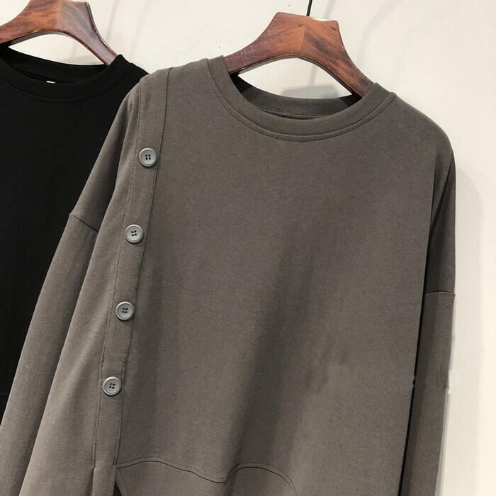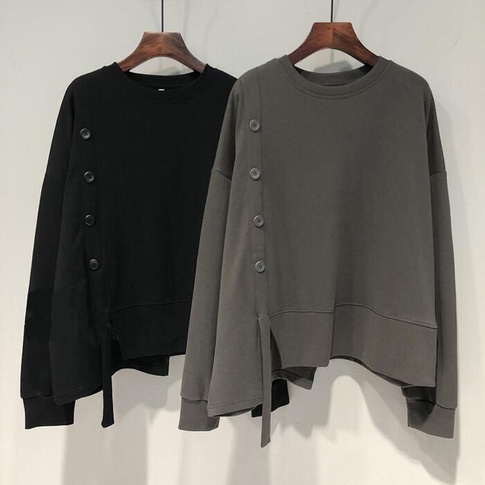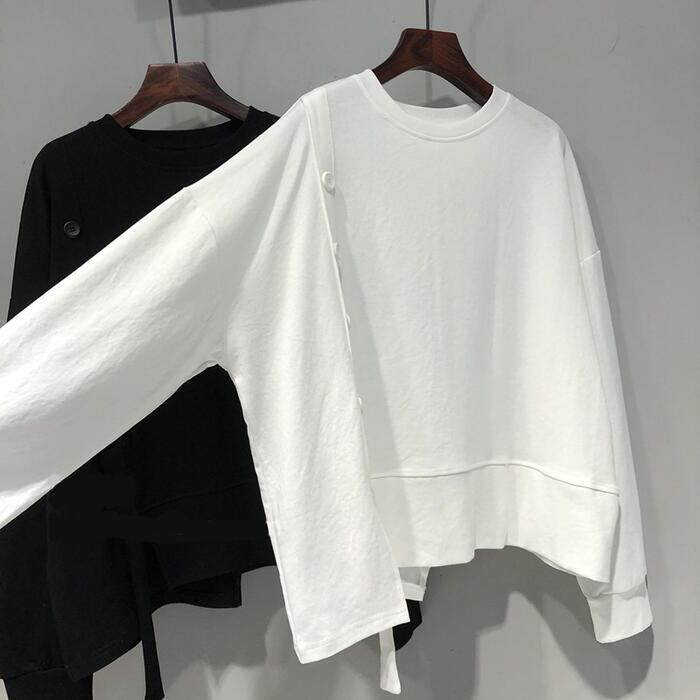 全3色 大きいサイズトップス スウェット Tシャツ プルオーバー アシンメトリー 長袖 レディース カジュアル クルーネック おしゃれ フェミニン 大人可愛い シンプル ゆったり 楽ちん ホワイト 白 ブラック 黒 グレー 春 冬 秋 20代 30代 40代 50代