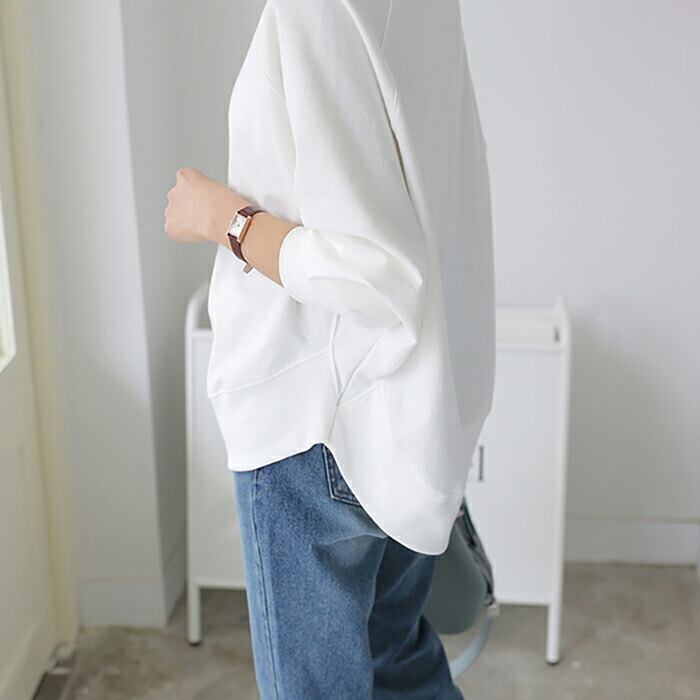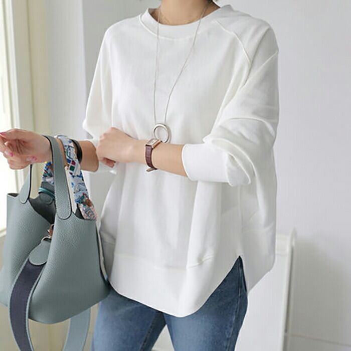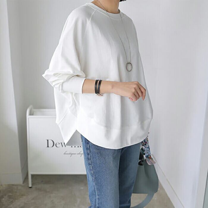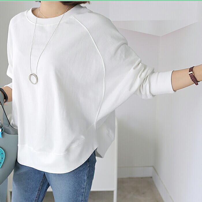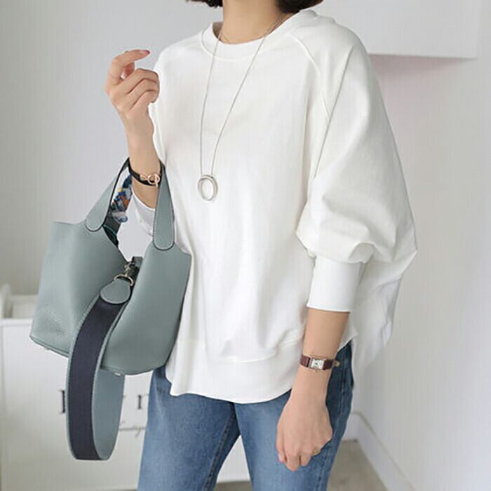 全2色 トップス レディース ボリューム袖 ラウンドネック きれいめ カジュアル 長袖 おしゃれ クラシック ナチュラル フェミニン リラックス ルームウェア コットン 綿 ホワイト 白 ブラック 黒 春 夏 秋 20代 30代 40代 50代