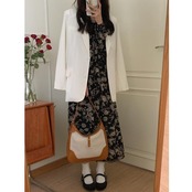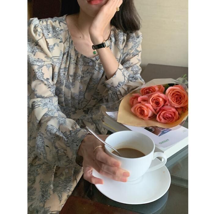 落ちついたボタニカル柄&ウエストリボンが上品可愛い印象に。