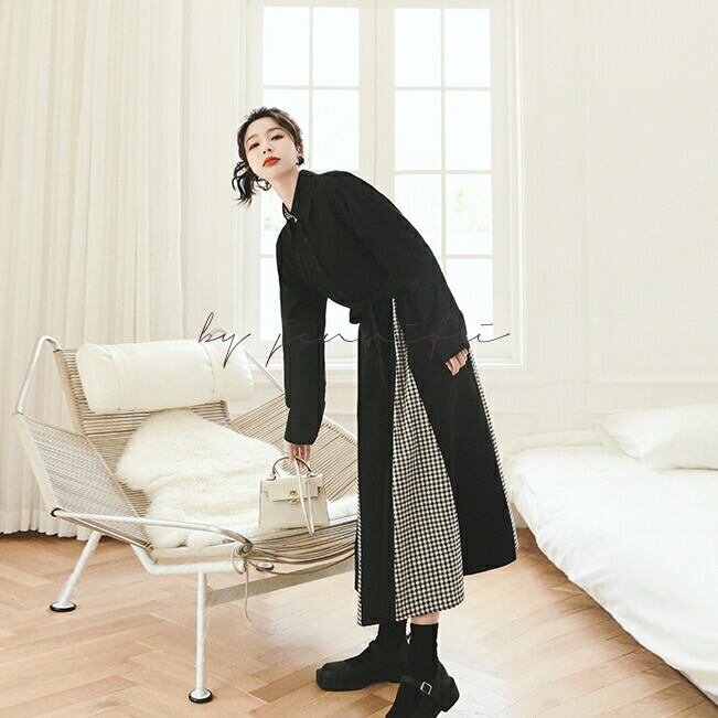 チェック柄の切り替えデザインが可愛いロングワンピース。