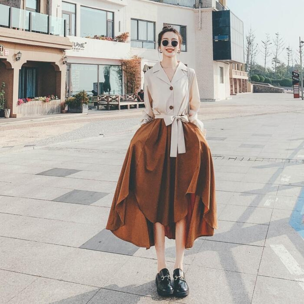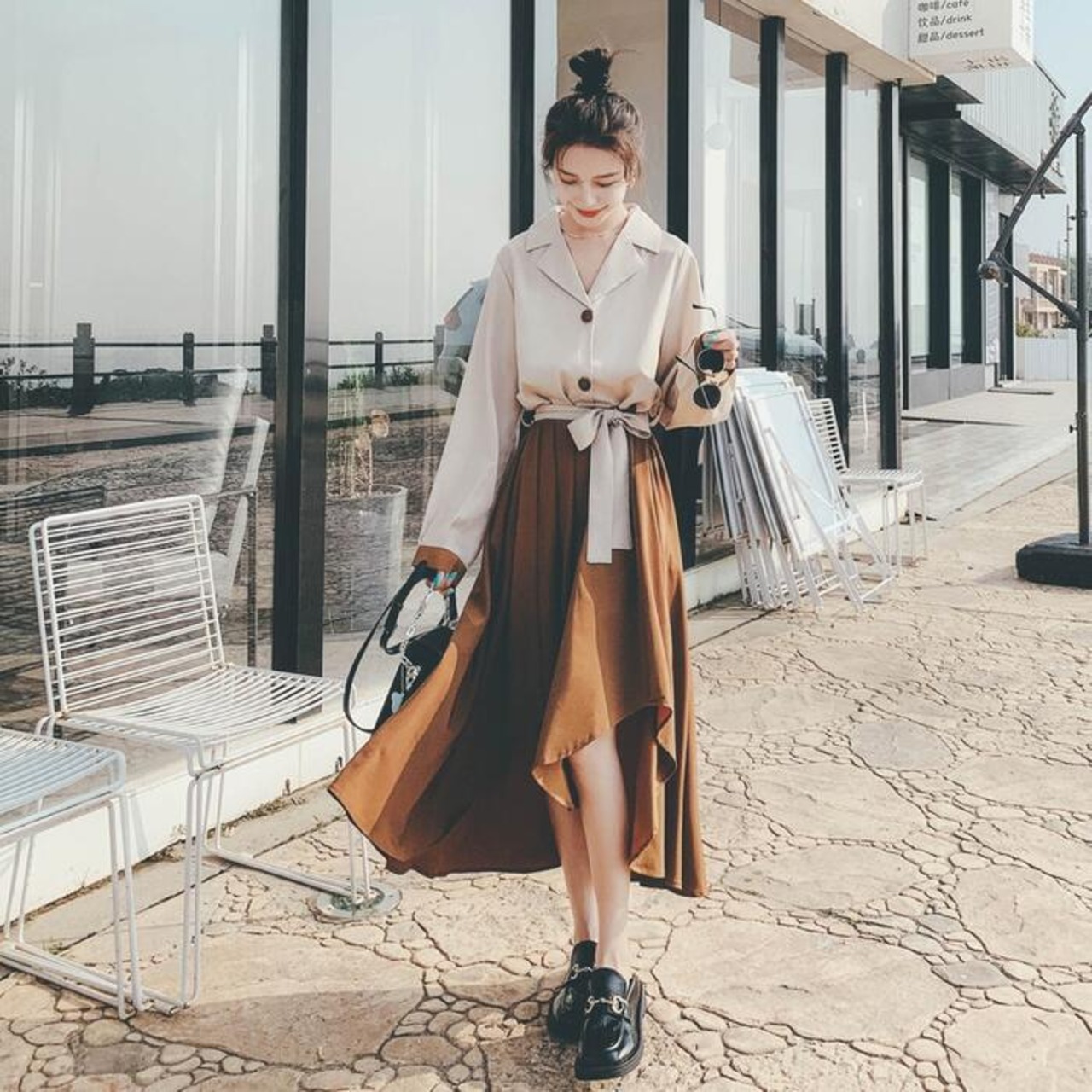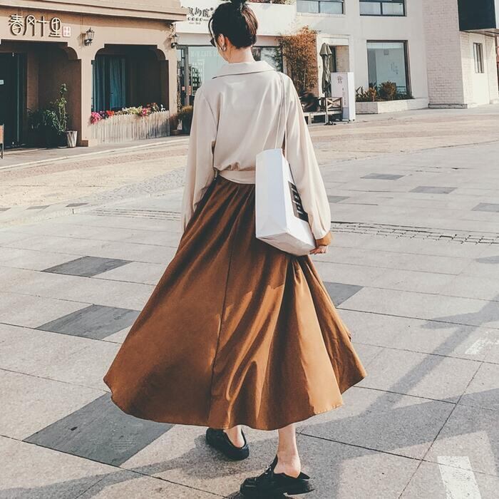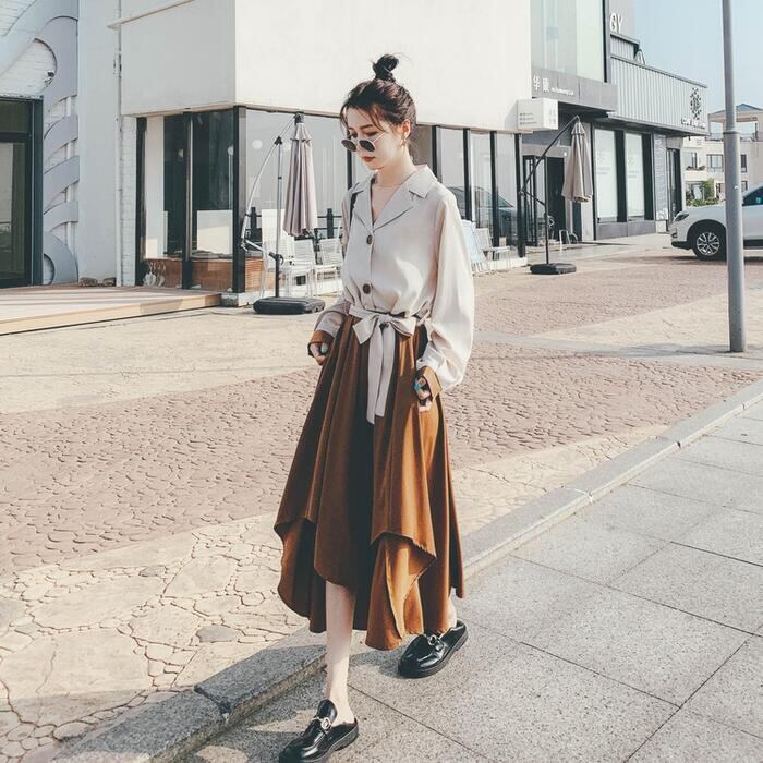 歩く度にひらりと揺れるアシンメトリーな裾が上品フェミニンな雰囲気。