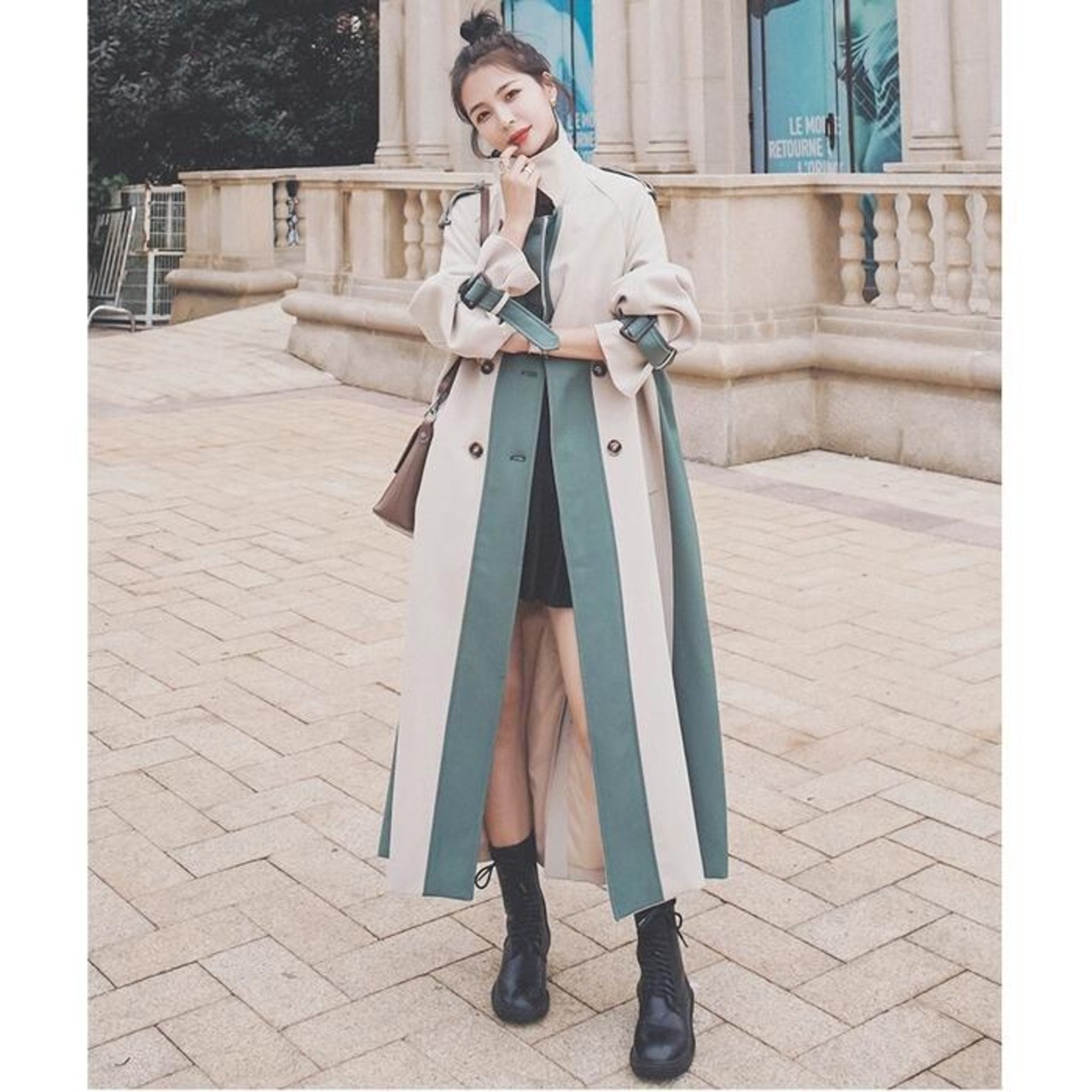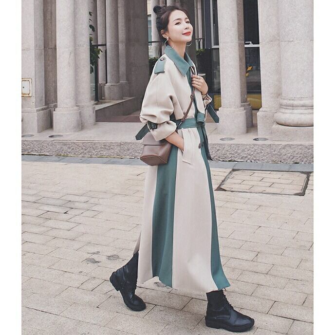 大きいサイズスプリングコート トレンチコート ジャケット 春 コート チェスター 配色 バイカラー レディース きれいめ カジュアル アウター 大人 可愛い ベルト フェミニン 韓国 ゆったり おしゃれ ベージュ 春 秋 冬 20代 30代 40代 50代
