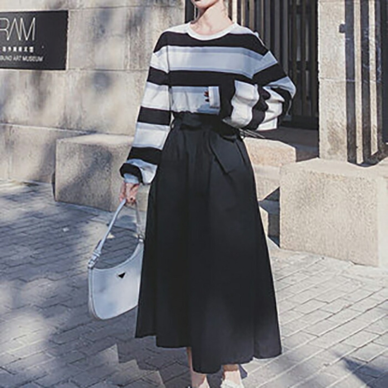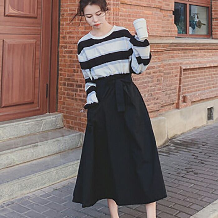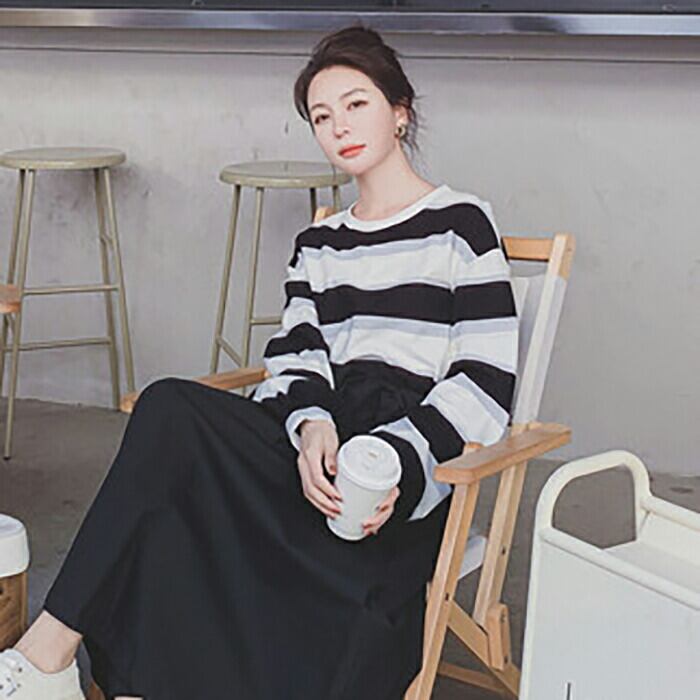 ボーダー柄がおしゃれなロングワンピース